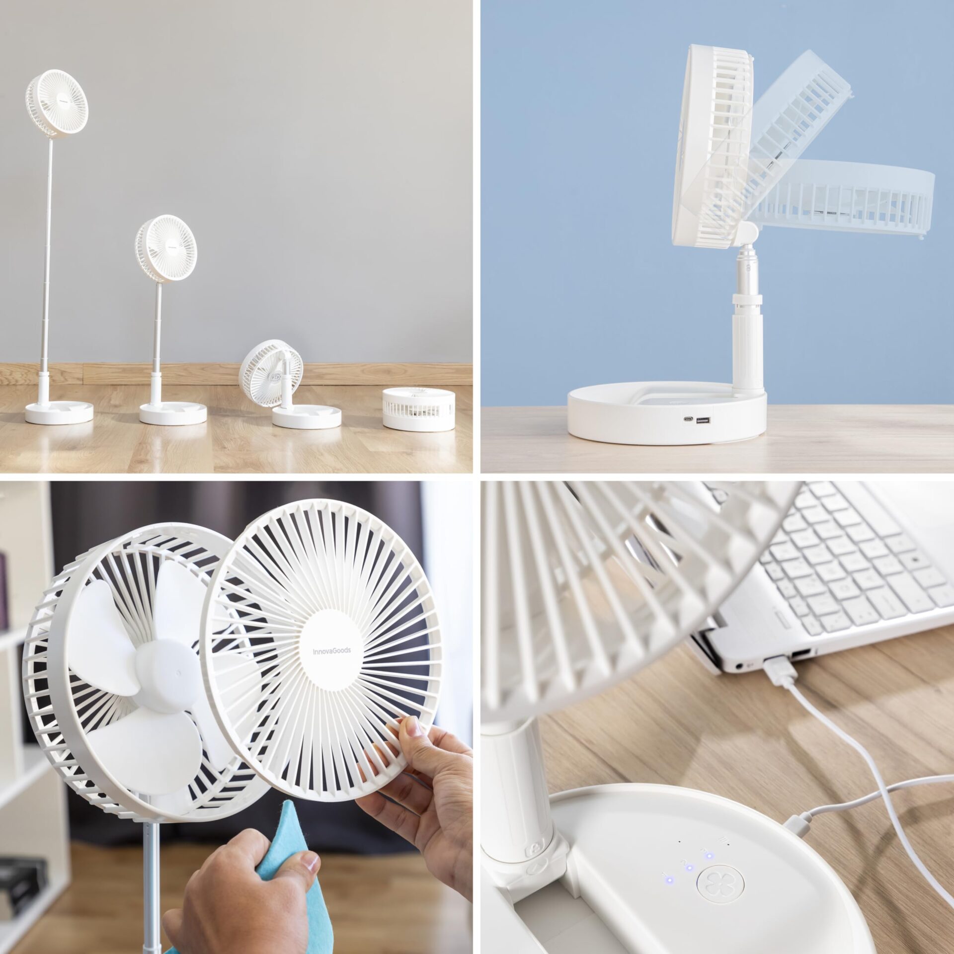 Składany Wentylator Akumulatorowy 3 w 1 Fandle InnovaGoods Ø77” 7200 mAh to innowacyjne urządzenie, które łączy w sobie funkcje wentylatora, lampy LED oraz powerbanku, co czyni go niezwykle wszechstronnym i praktycznym akcesorium. Jego unikalne cechy wyróżniają go na tle konkurencji i sprawiają, że jest to produkt, który warto mieć w swoim wyposażeniu.