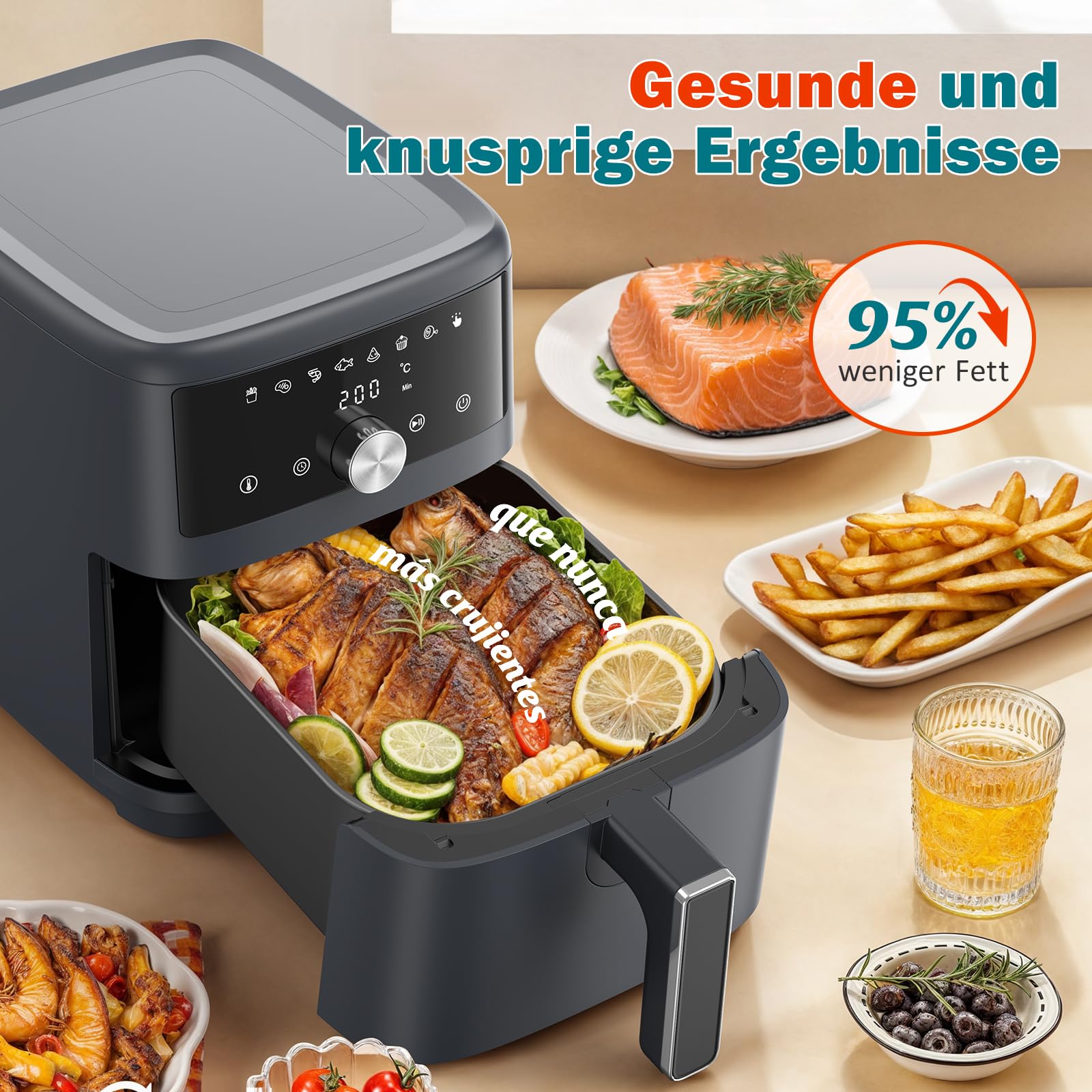 Frytkownica na gorące powietrze Innsky o pojemności 6 litrów to idealne urządzenie dla każdego, kto pragnie cieszyć się smacznymi, chrupiącymi potrawami bez wyrzutów sumienia. Dzięki innowacyjnej technologii smażenia z użyciem powietrza możesz przygotować ulubione dania z aż 95% mniejszą ilością oleju w porównaniu do tradycyjnego smażenia. To nie tylko sposób na zdrowsze jedzenie, ale także na smakowite posiłki, które zadowolą całą rodzinę.