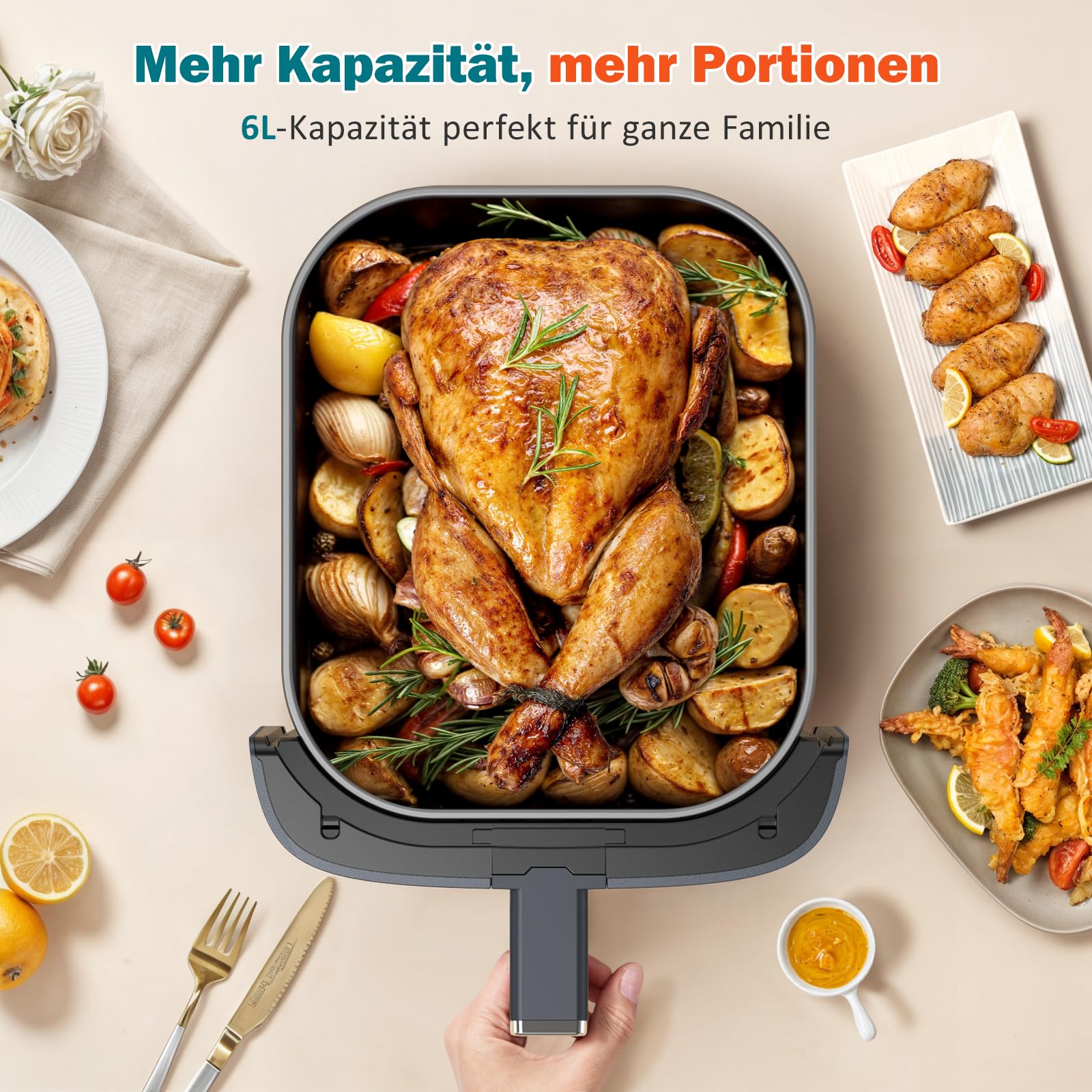 Z pojemnością 6 litrów, frytkownica Innsky jest idealna do przygotowywania posiłków dla całej rodziny. Jej kompaktowe, kwadratowe wzornictwo oszczędza miejsce na blacie, co czyni ją doskonałym rozwiązaniem nawet w mniejszych kuchniach. Niezależnie od tego, czy chcesz usmażyć frytki, upiec ciasto, czy przygotować zdrowe warzywa, masz wystarczająco dużo miejsca, aby zrealizować wszystkie kulinarne plany.