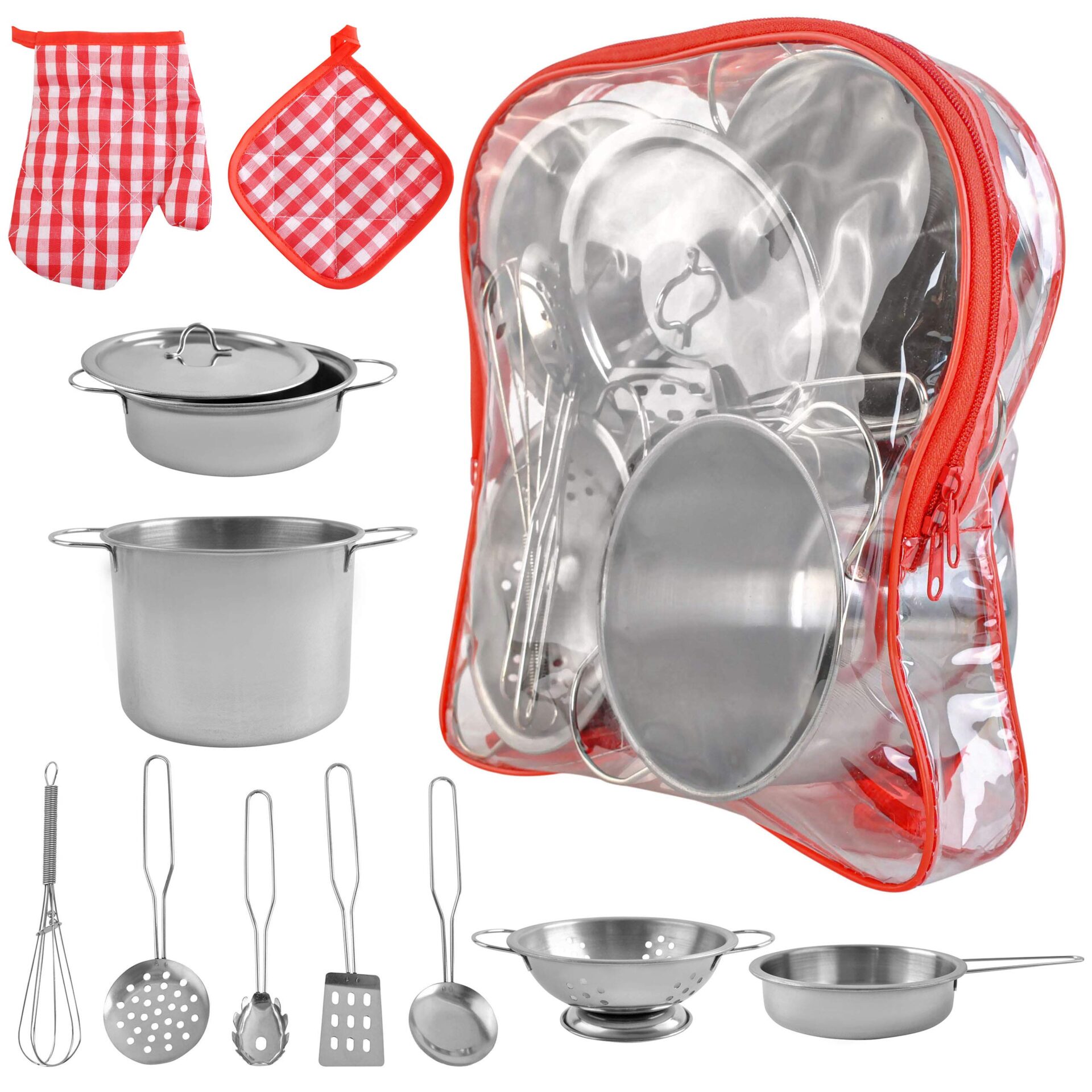 Jednym z kluczowych atutów tego zestawu jest materiał, z którego został wykonany – stal nierdzewna. Dzięki temu akcesoria są nie tylko trwałe i odporne na uszkodzenia, ale także łatwe do czyszczenia, co jest istotne w przypadku zabaw dziecięcych. Stal nierdzewna nadaje zestawowi elegancki wygląd, co sprawia, że dzieci mogą poczuć się jak prawdziwi kucharze.