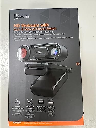 j5create 1080P HD Kamera internetowa z mikrofonem USB PC Laptop z automatycznym ustawianiem ostrości z magnetyczną pokrywą prywatności do komputera Live Streaming/Zoom/Rozmowy wideo/Spotkania online/Gry (JVU250) to zaawansowana kamera internetowa, która oferuje wysoką jakość obrazu i dźwięku. Jest idealna do prowadzenia rozmów wideo, transmisji strumieniowej, spotkań online oraz do gier.