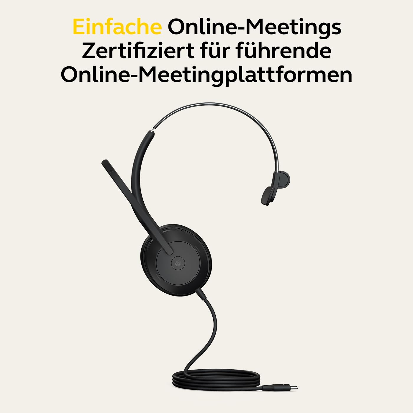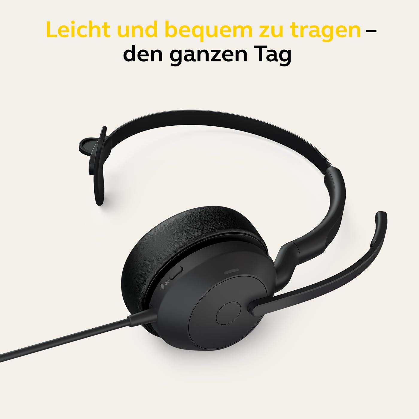 Jabra Evolve2 50 – Przewodowy zestaw słuchawkowy mono z technologią Jabra Air Comfort, mikrofonem z redukcją hałasu i aktywną redukcją szumów – certyfikat MS Teams, kompatybilny z innymi platformami – kolor czarny