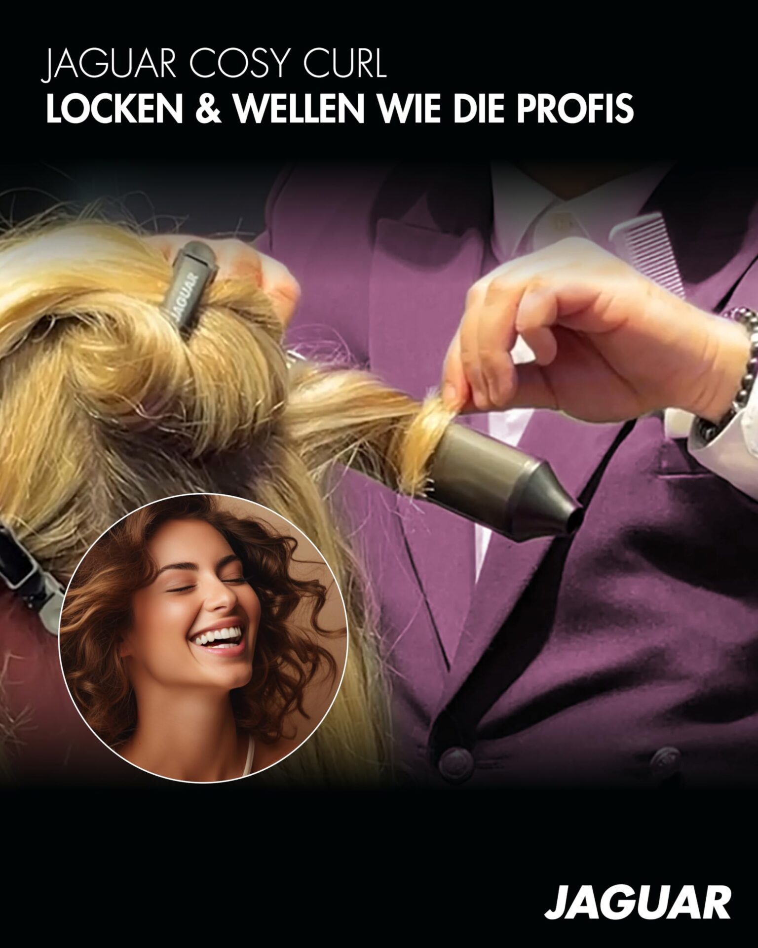 Idealna lokówka do: Idealna lokówka do włosów – lokówka JAGUAR COSY Curl umożliwia stylizację dużych, naturalnych loków i fal dzięki swojej owalnej powłoce ceramiczno-turmalinowej. Idealny do różnych rodzajów włosów z indywidualnymi ustawieniami temperatury od 120 do 200°C.