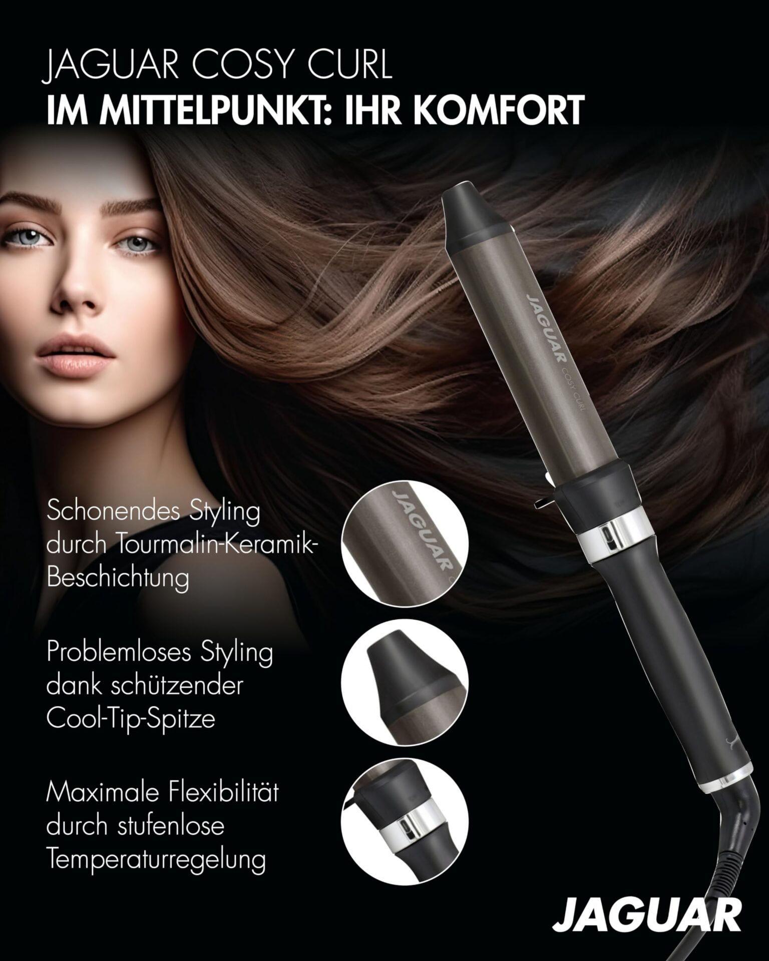 Lokówka do w?osów JAGUAR COSY CURL – owalny kszta?t, 3 regulowane poziomy temperatury, obrotowy kabel