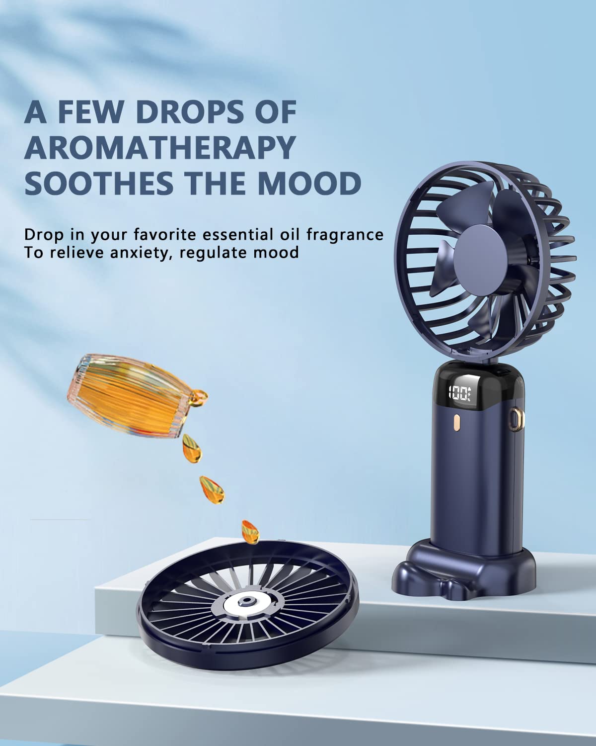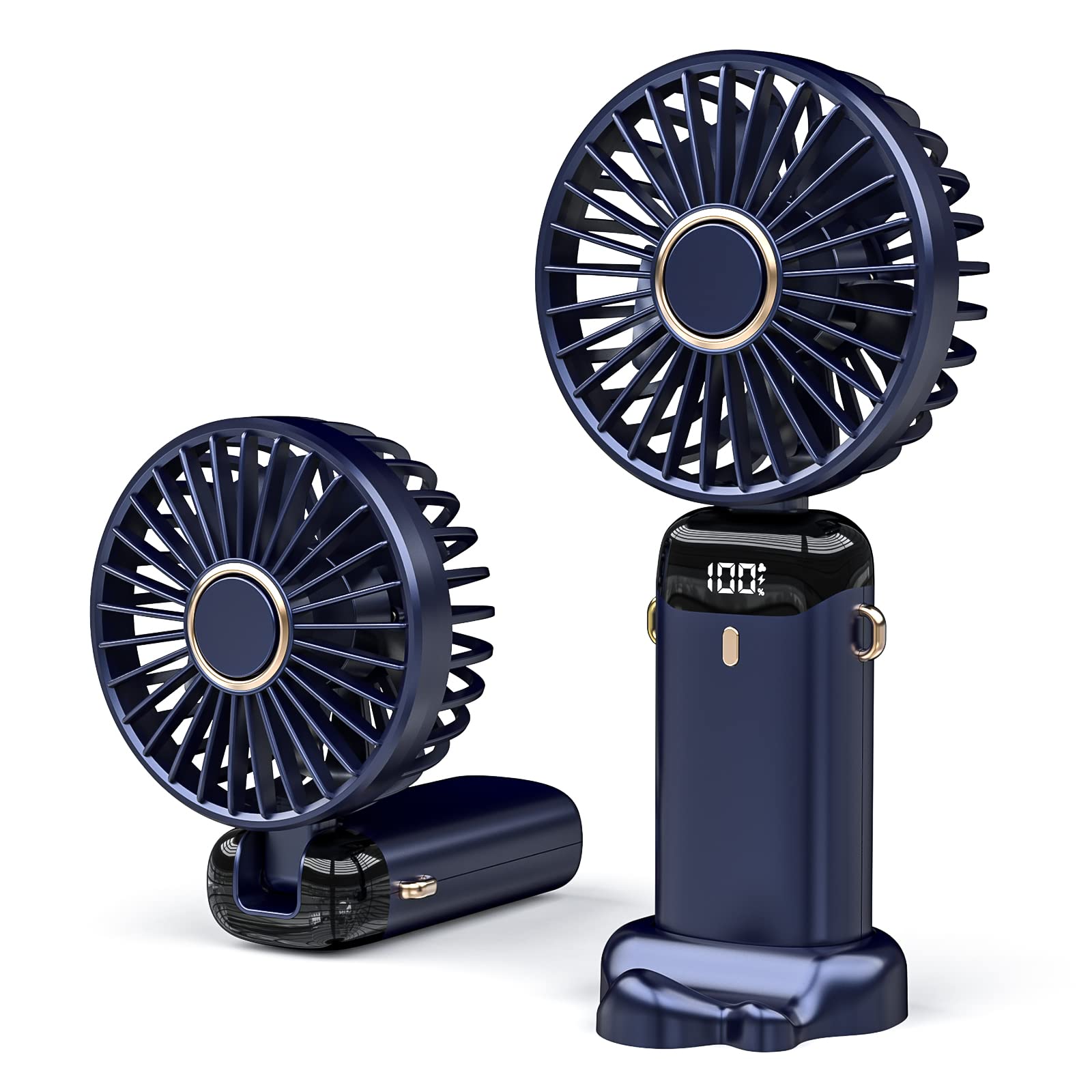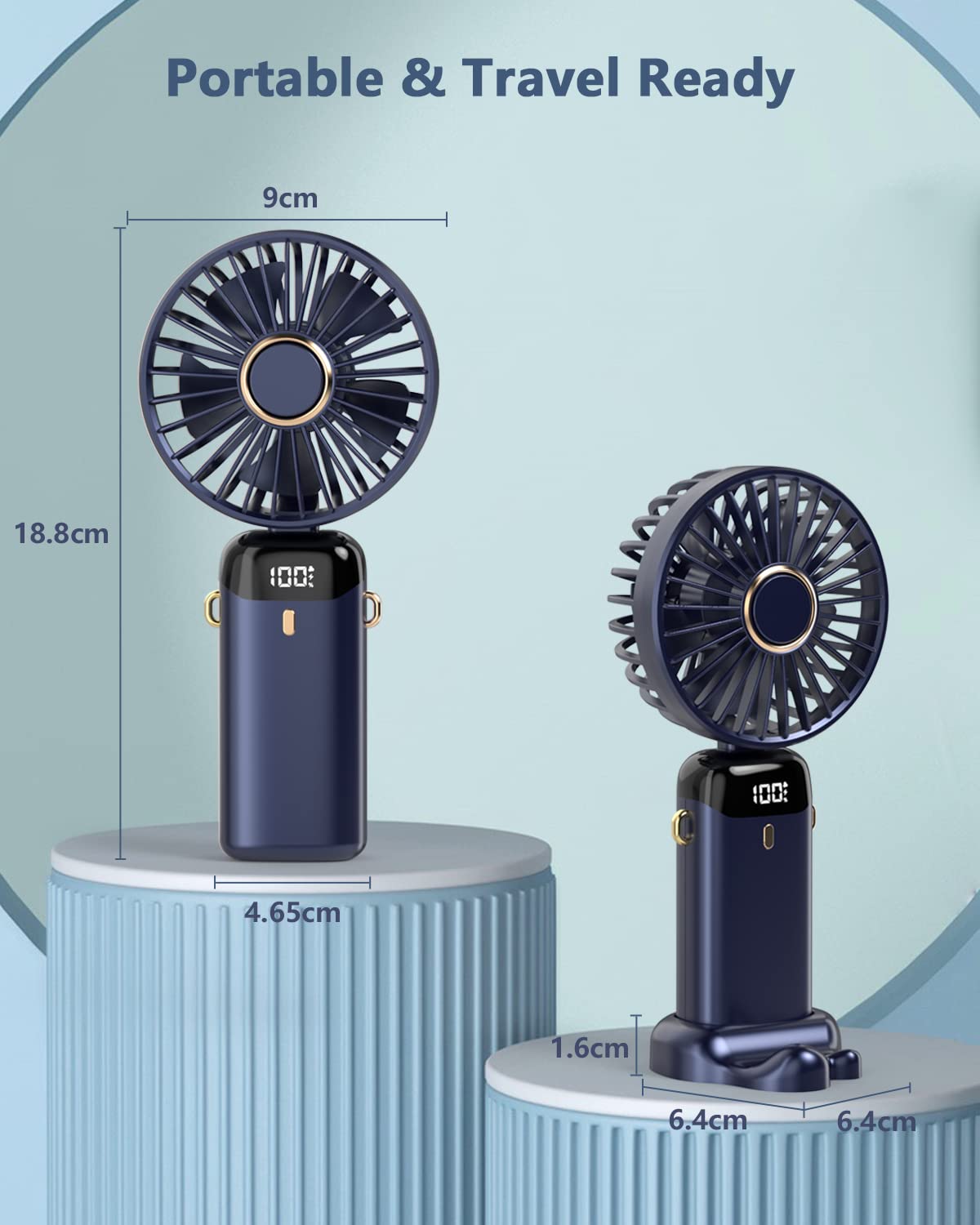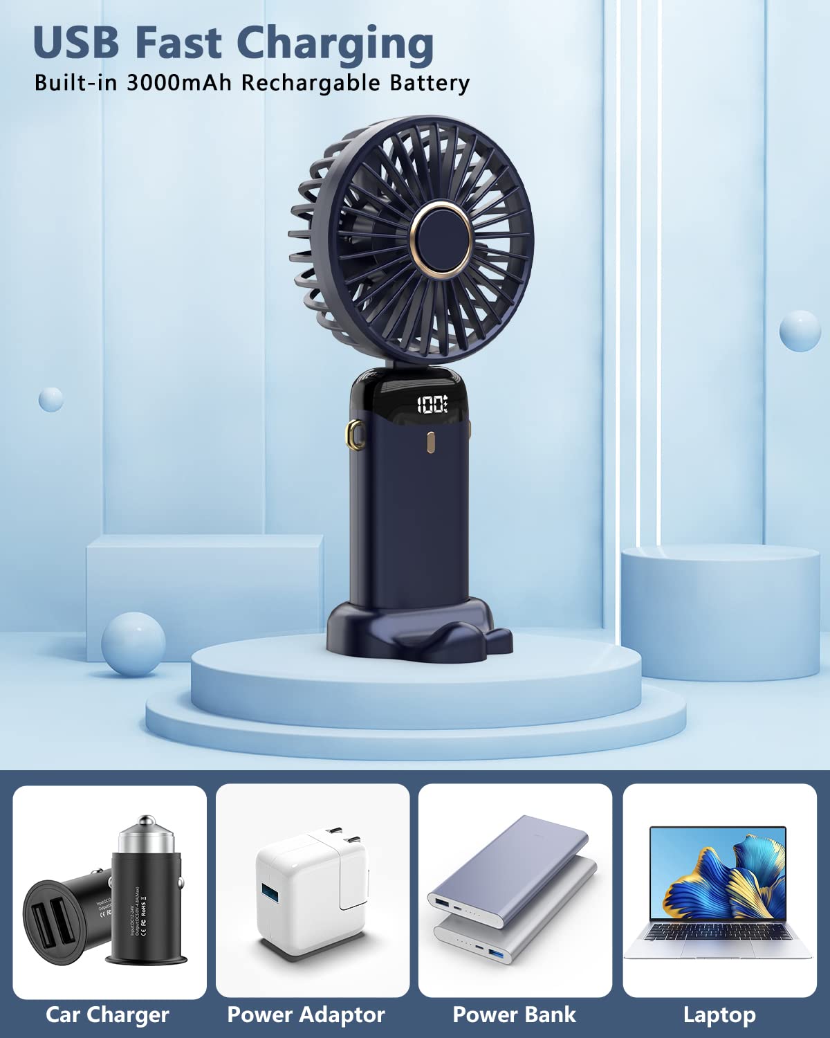 Mini wentylator ręczny, wentylator biurkowy USB, mały wentylator stołowy z 5 prędkościami i akumulatorem USB 3000 mAh, składany, elektryczny wentylator do podróży, biura, gospodarstwa domowego