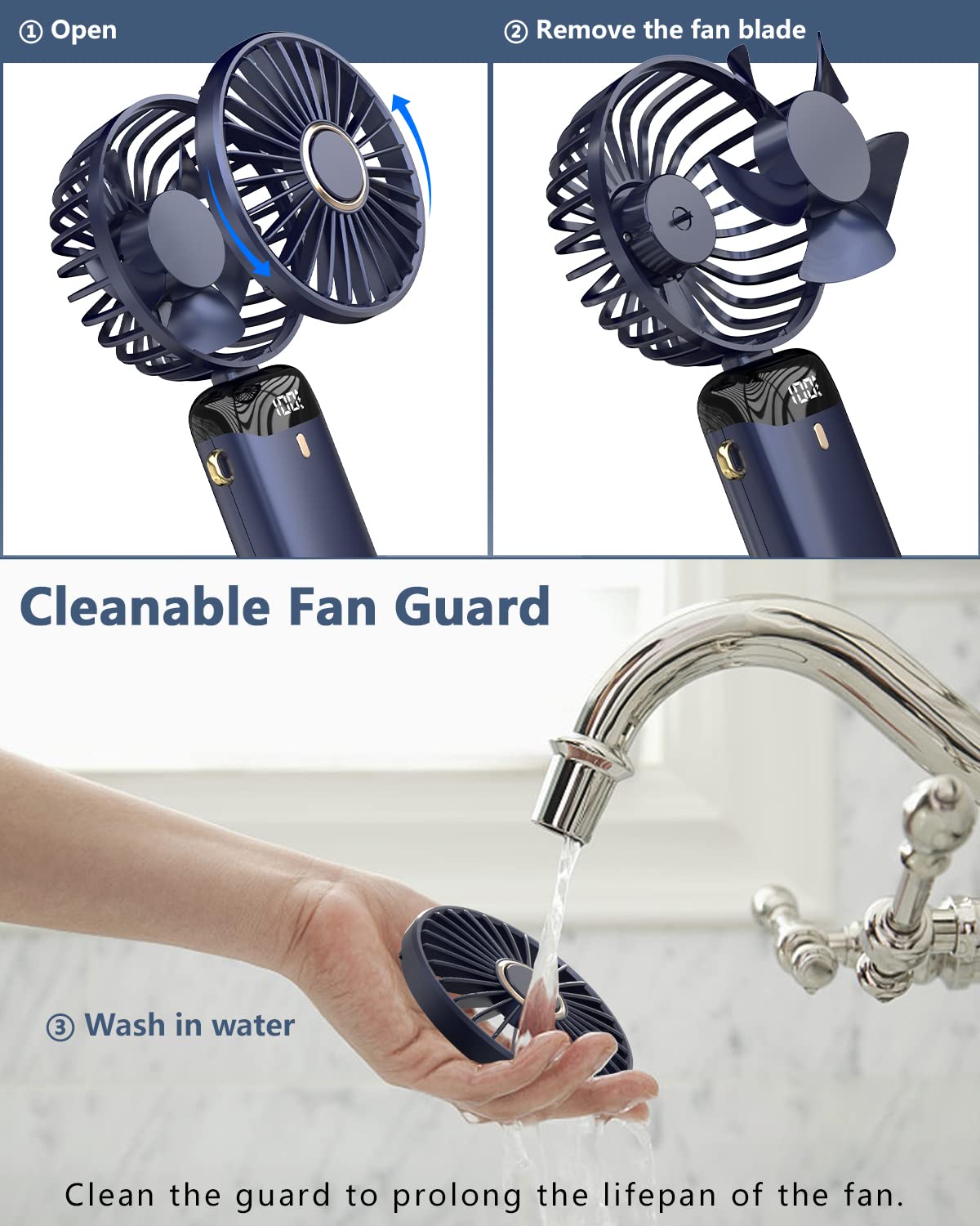 【Zdejmowane dla łatwego: 【Zdejmowane dla łatwego czyszczenia】 Aby były bardziej przyjazne dla środowiska i zdrowsze, wentylatory stołowe USB są wyposażone w pokrywę bez śrub. Pokrywę można zdjąć, obracając ją w kierunku przeciwnym do ruchu wskazówek zegara. Czyszczenie osłony wentylatora i łopatek wentylatora przedłuża ich