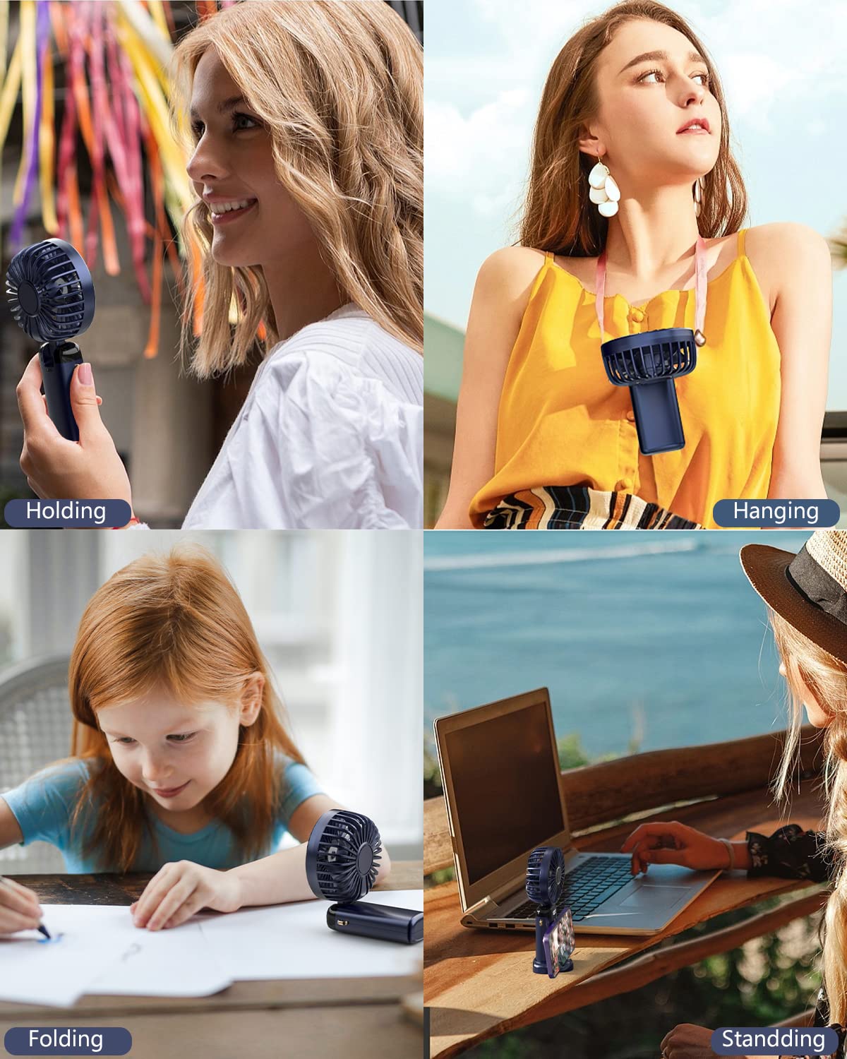 【Przenośne urządzenia i: 【Przenośne urządzenia i lekka konstrukcja】 Praktyczna, przyjazna dla użytkownika konstrukcja uchwytu i składana konstrukcja (regulacja 90°). Składany wentylator elektryczny można włożyć do torby. Szczególnie nadaje się do aktywności na świeżym powietrzu i letnich podróży. Można go zabrać ze sobą wsz