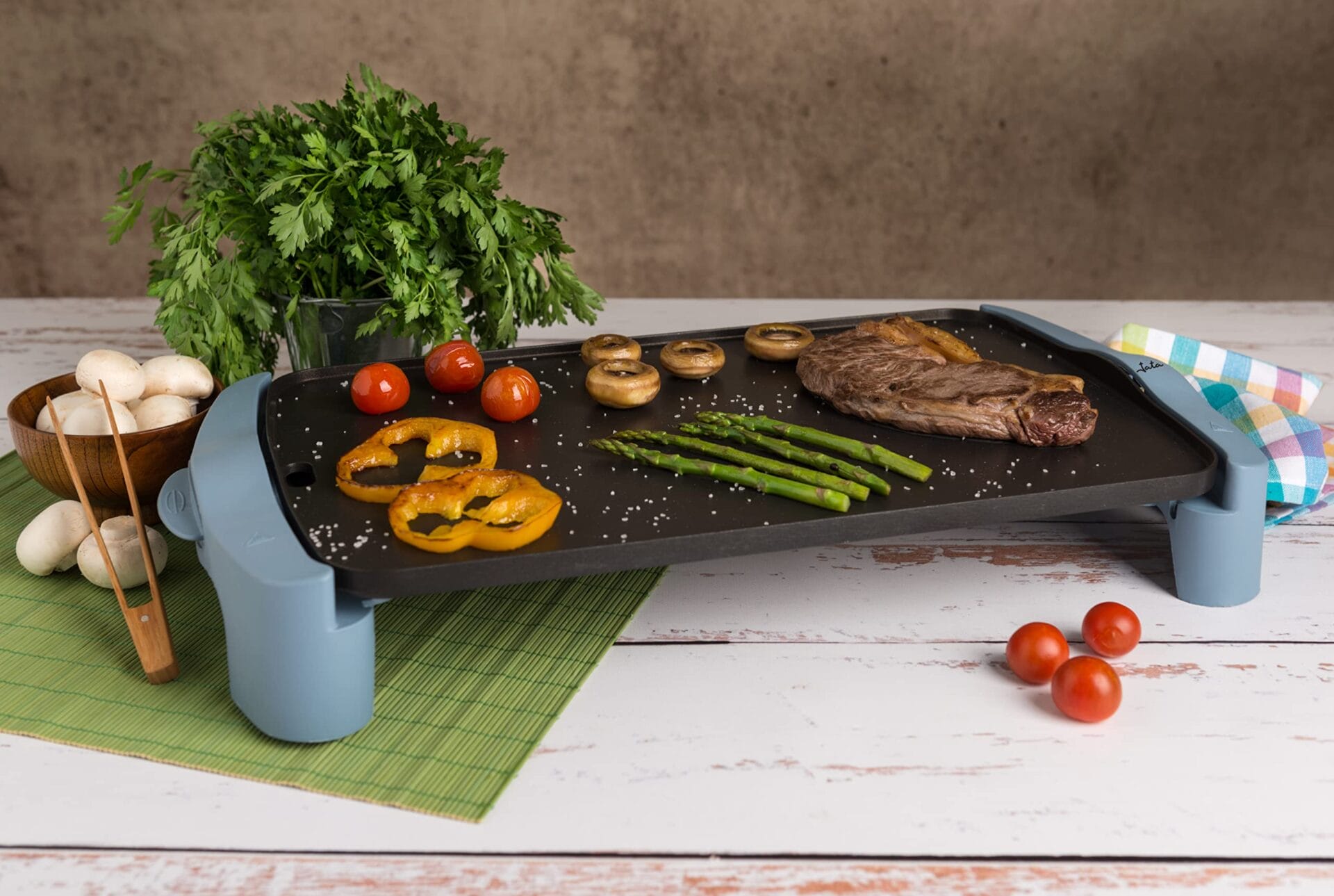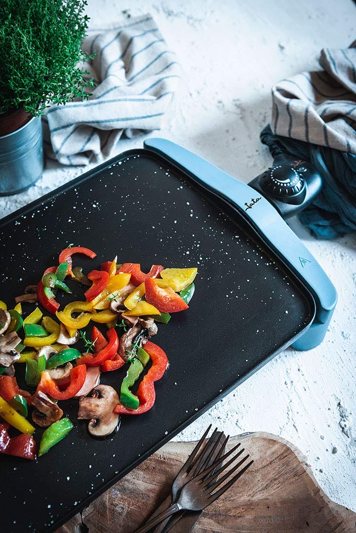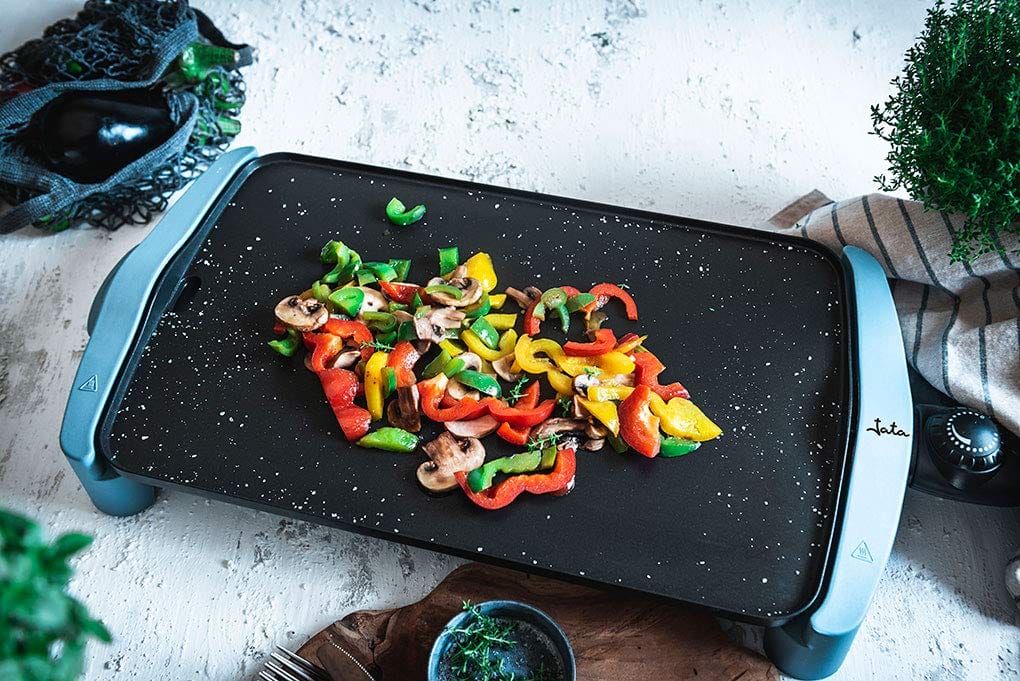 – Powierzchnia grillowa z powłoką granitową, odporną na zarysowania i nieprzywierającą