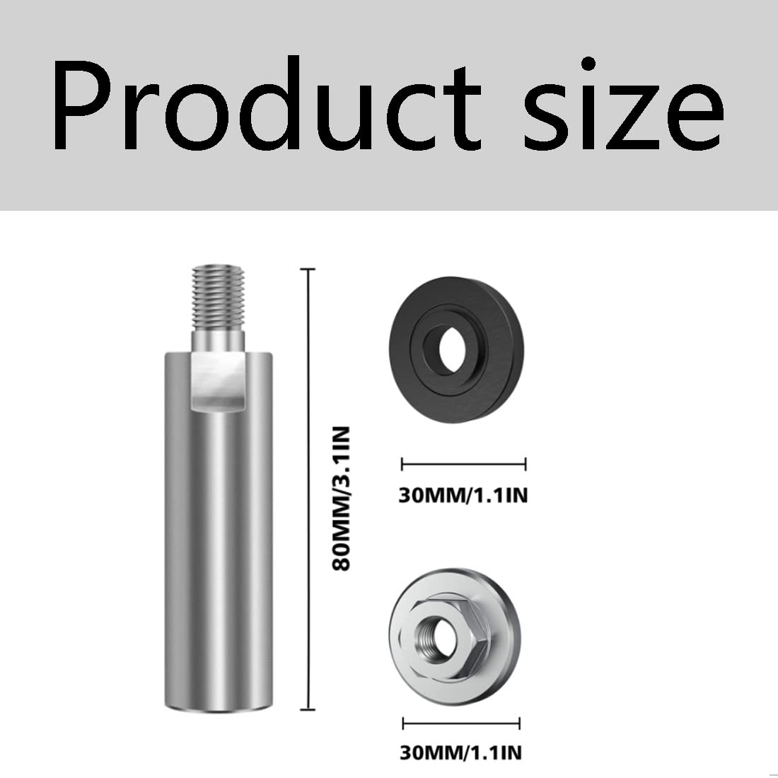 • 【Wymiary】Całkowita długość drążka przedłużającego wynosi 80 mm, średnica wynosi 16 mm, gwint wewnętrzny wynosi 10 mm, średnica zewnętrzna płyty dociskowej wynosi 30 mm, nadaje się do maszyny polerskiej z gwintem M14.
