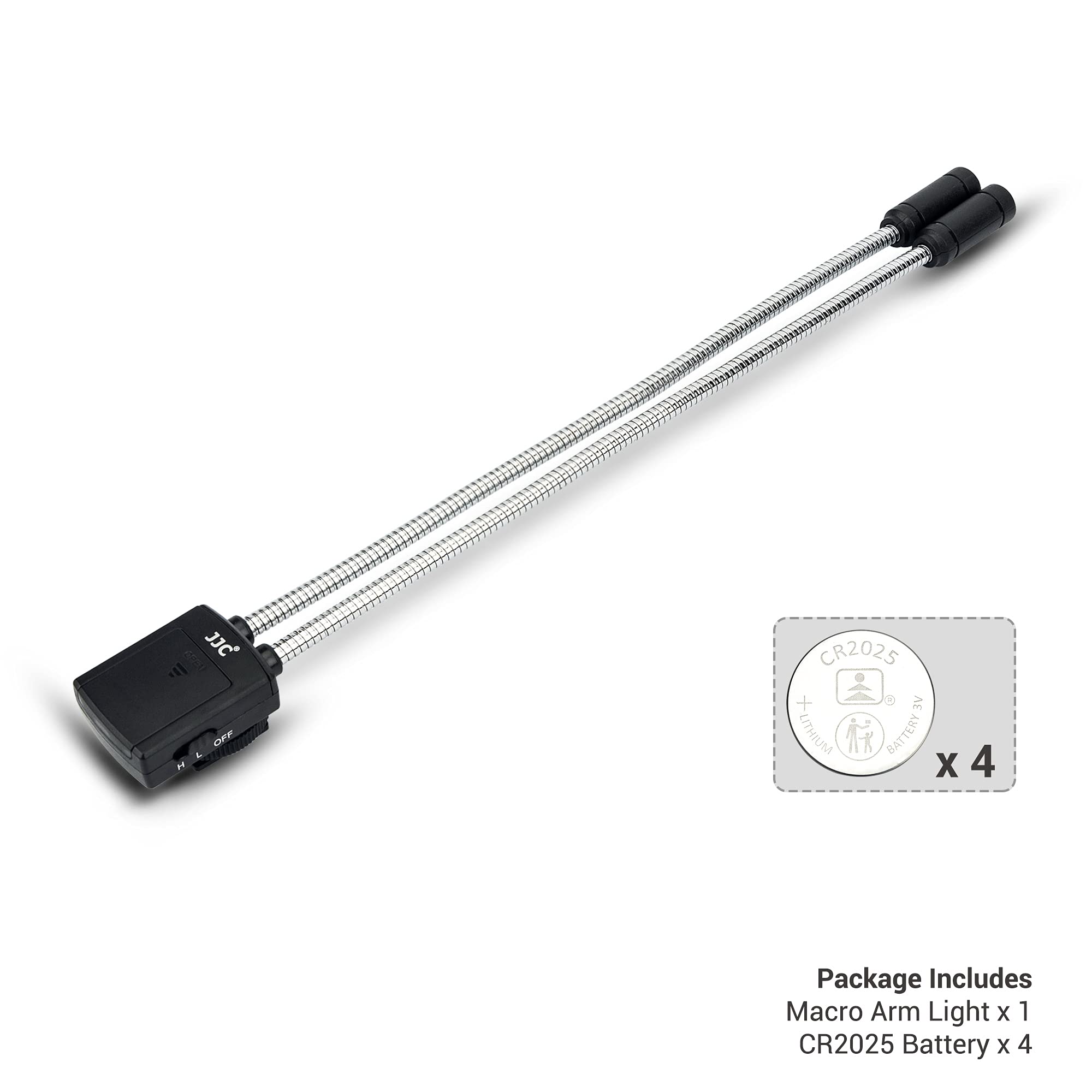 JJC Podwójne diody: JJC Podwójne diody LED bez ciepła do fotografowania makrofotografii. Zasilany 2 bateriami CR2025. (4 baterie CR2025 w zestawie)
