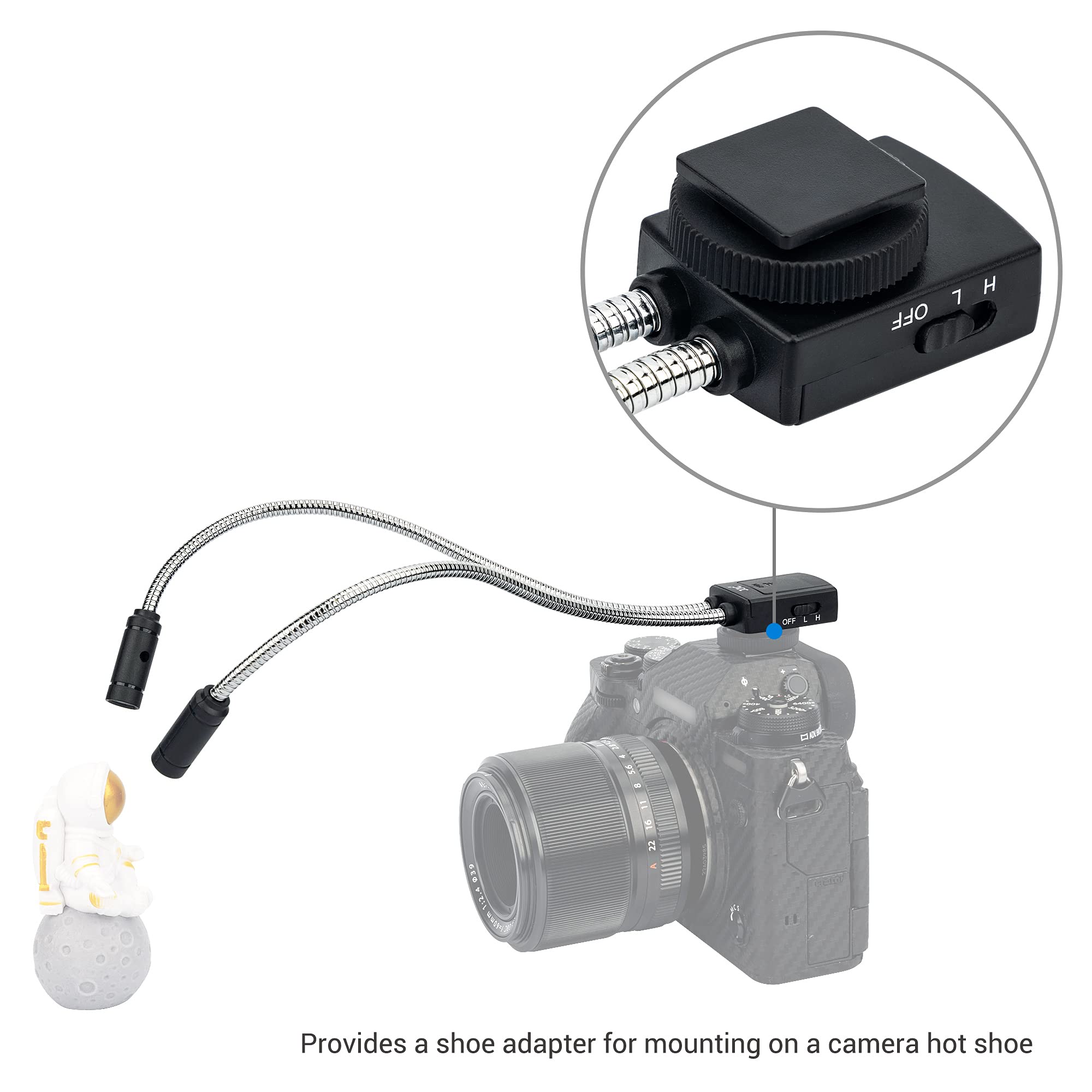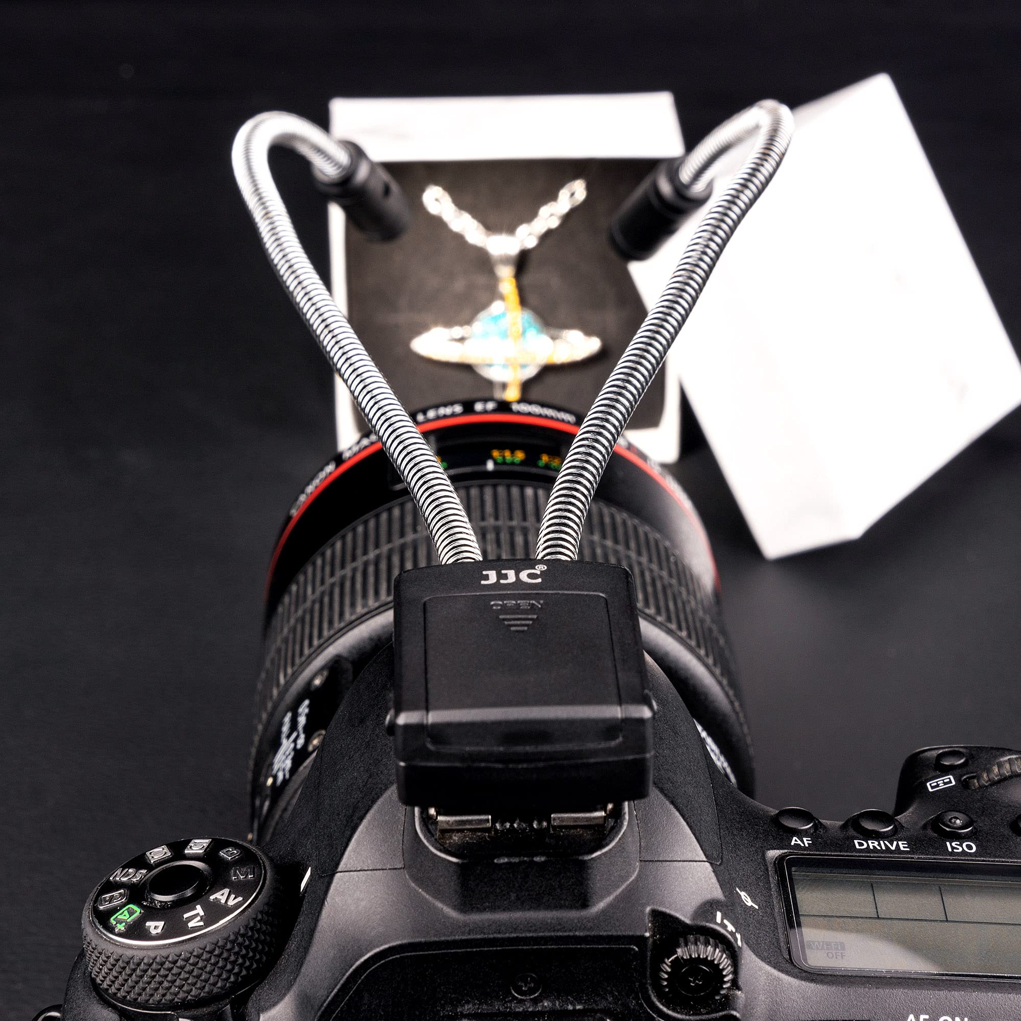 JJC Gęsia szyja makro ramię światło LED wypełniające światło do aparatów cyfrowych owady rośliny biżuteria fotografia makro – montowana na gorącej stopce – dwugłowicowa dioda LED – 5 poziomów jasności