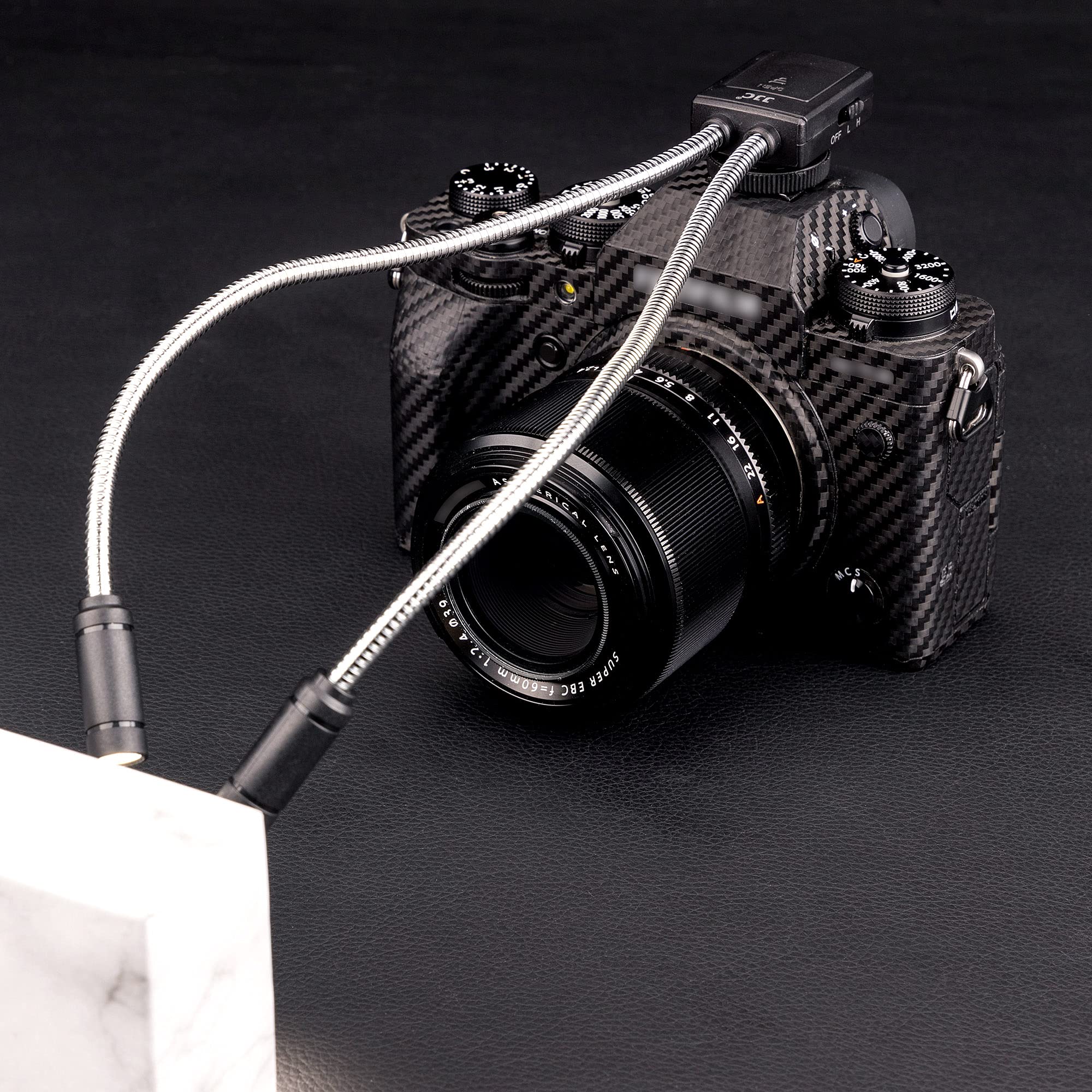 Elastyczne ramię świetlne: Elastyczne ramię świetlne o długości 23 cm – kabel blokujący umożliwia swobodną regulację kąta napełnienia światła. wystarczająca długość światła, aby dostosować kąt podczas korzystania z obiektywu zmiennoogniskowego lub makro przedłużek.