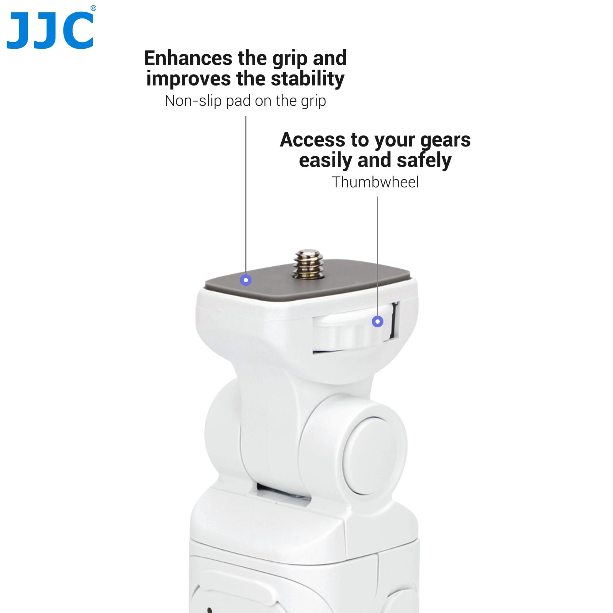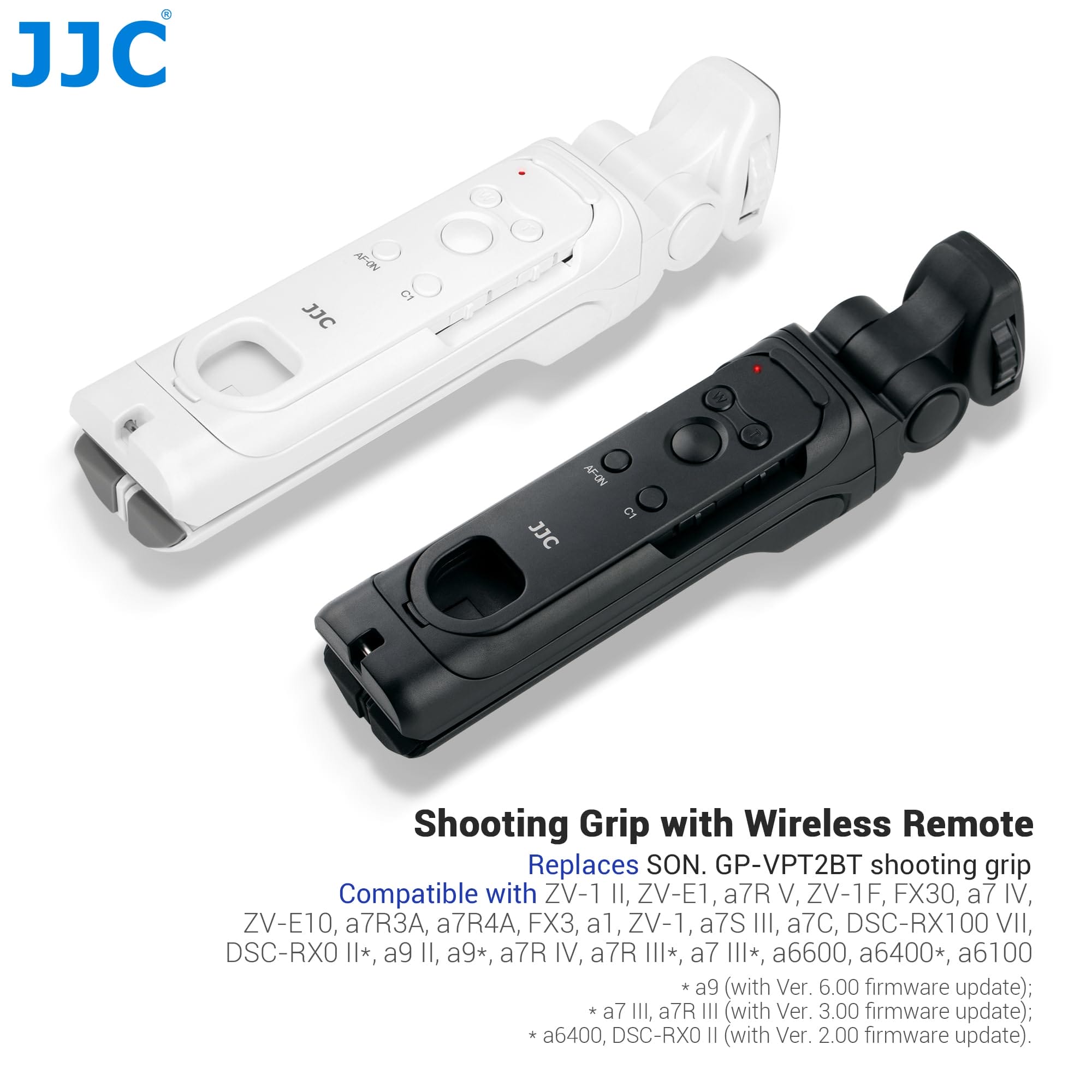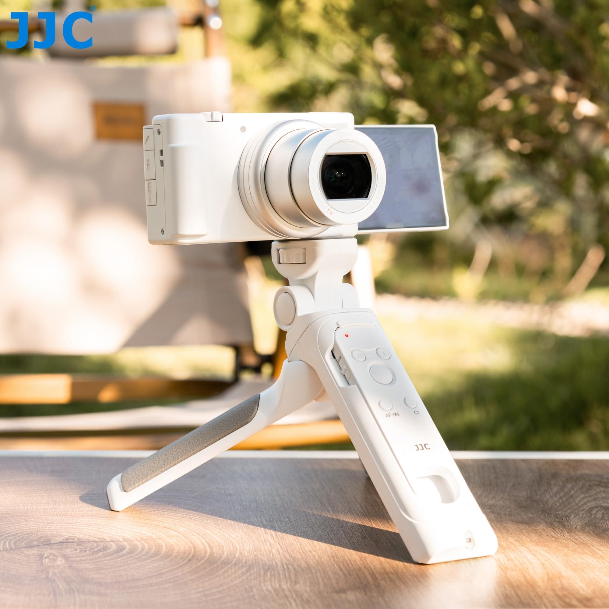 JJC Biały odłączany uchwyt Bluetooth do aparatów Sony – vlog transmisja na żywo selfie – mini statyw – zakres panoramowania 360° – idealny do ZV-1 II ZV-E1 ZV-1F ZV-E10 A6100