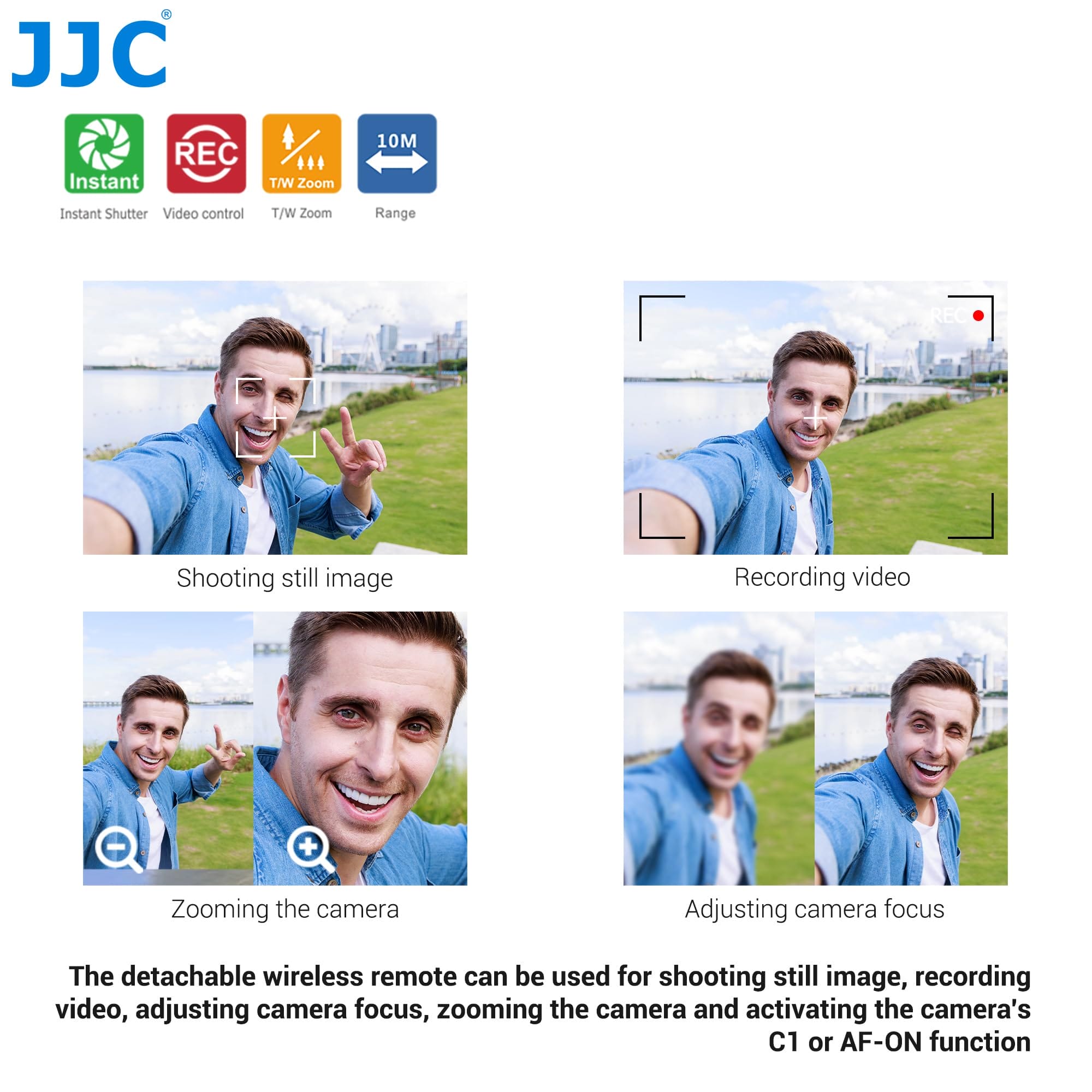 W zestawie znajdują się również niezbędne akcesoria, takie jak bezprzewodowy pilot, bateria CR2032, etui do przechowywania i smycz. Dzięki temu pakietowi JJC Shooter masz wszystko, czego potrzebujesz do wygodnego fotografowania.