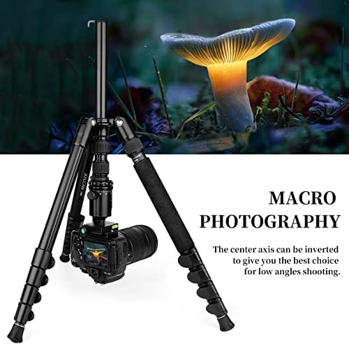 Statyw jest wyposażony w standardową szybkozłączkę 1/4″, dzięki czemu pasuje do prawie każdego aparatu. Odwrócona środkowa kolumna umożliwia fotografowanie makro obiektów pod niskim kątem. Może być również łatwo przekształcony w monopod, co czyni go odpowiednim narzędziem do fotografowania wesel i koncertów.