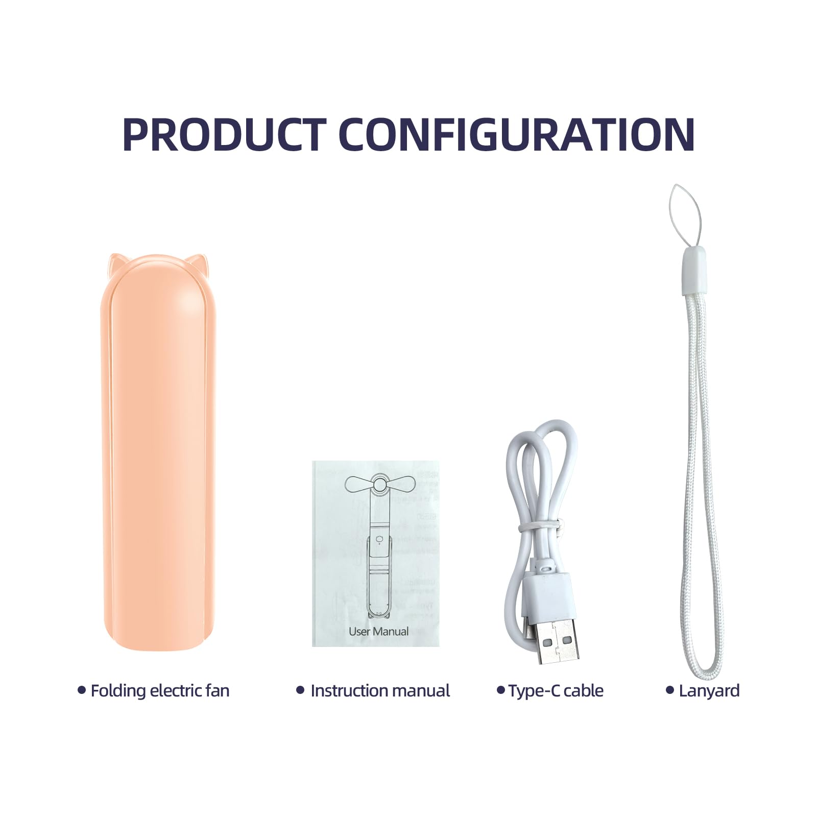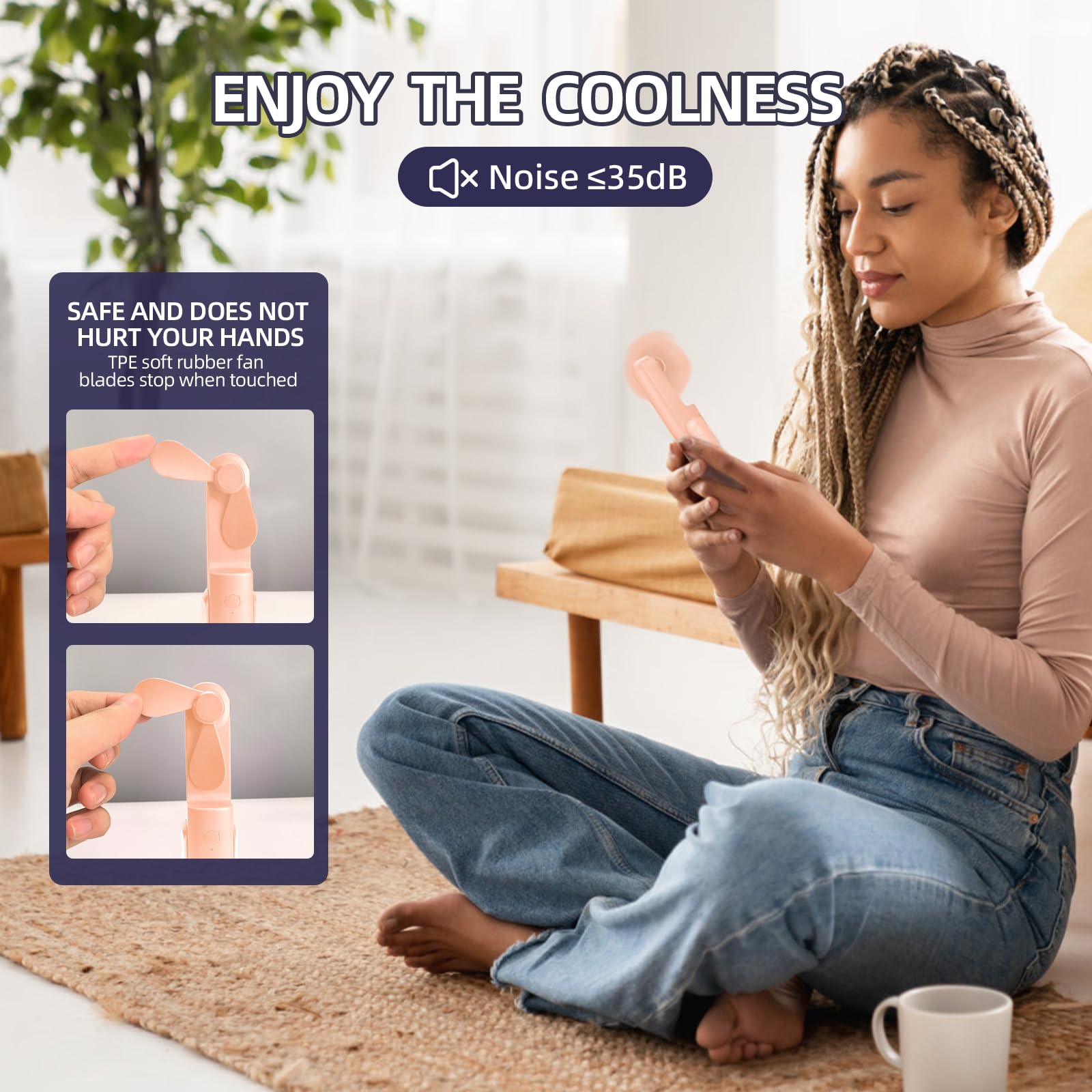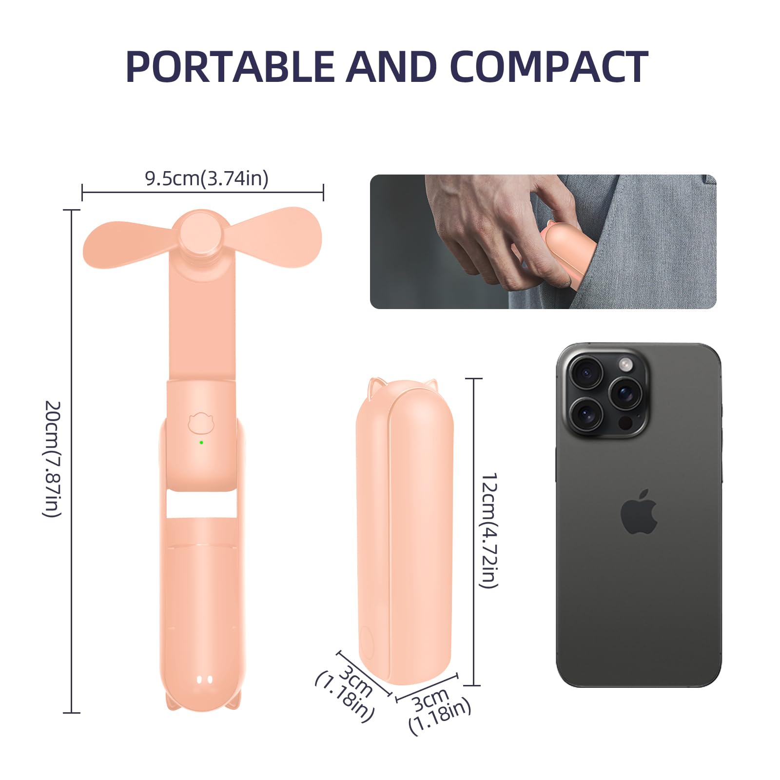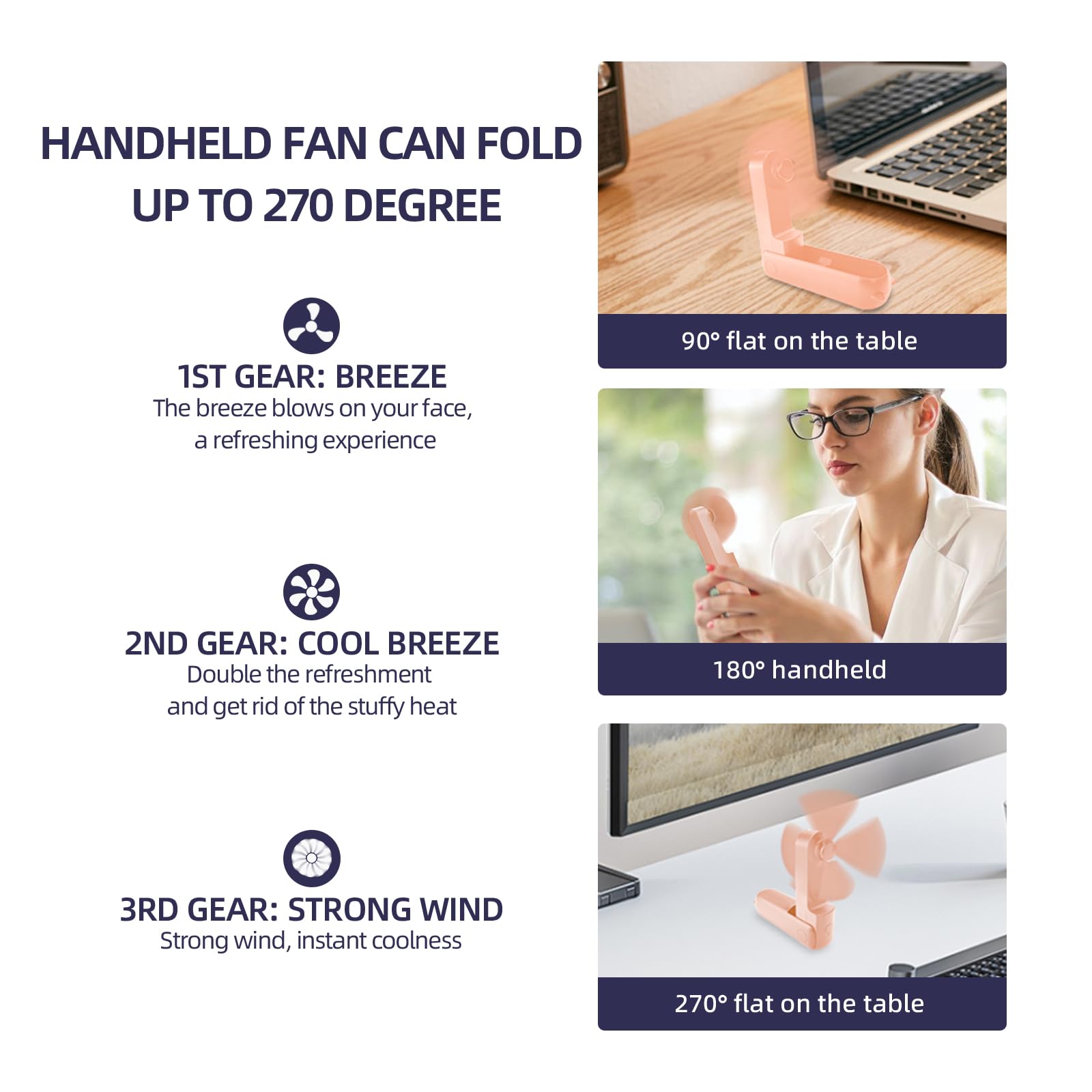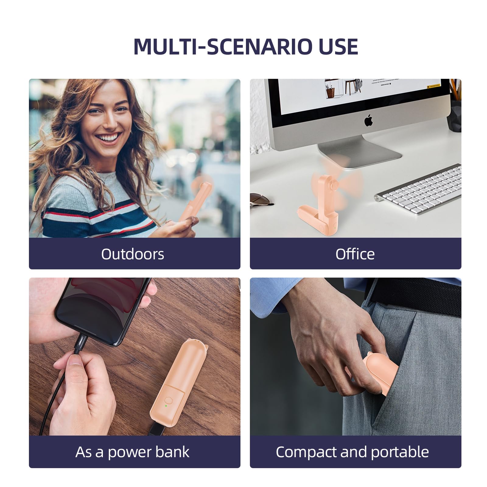 Ręczny Wentylator Przenośny Jsdoin z 3 Prędkościami i Powerbankiem – Różowy
