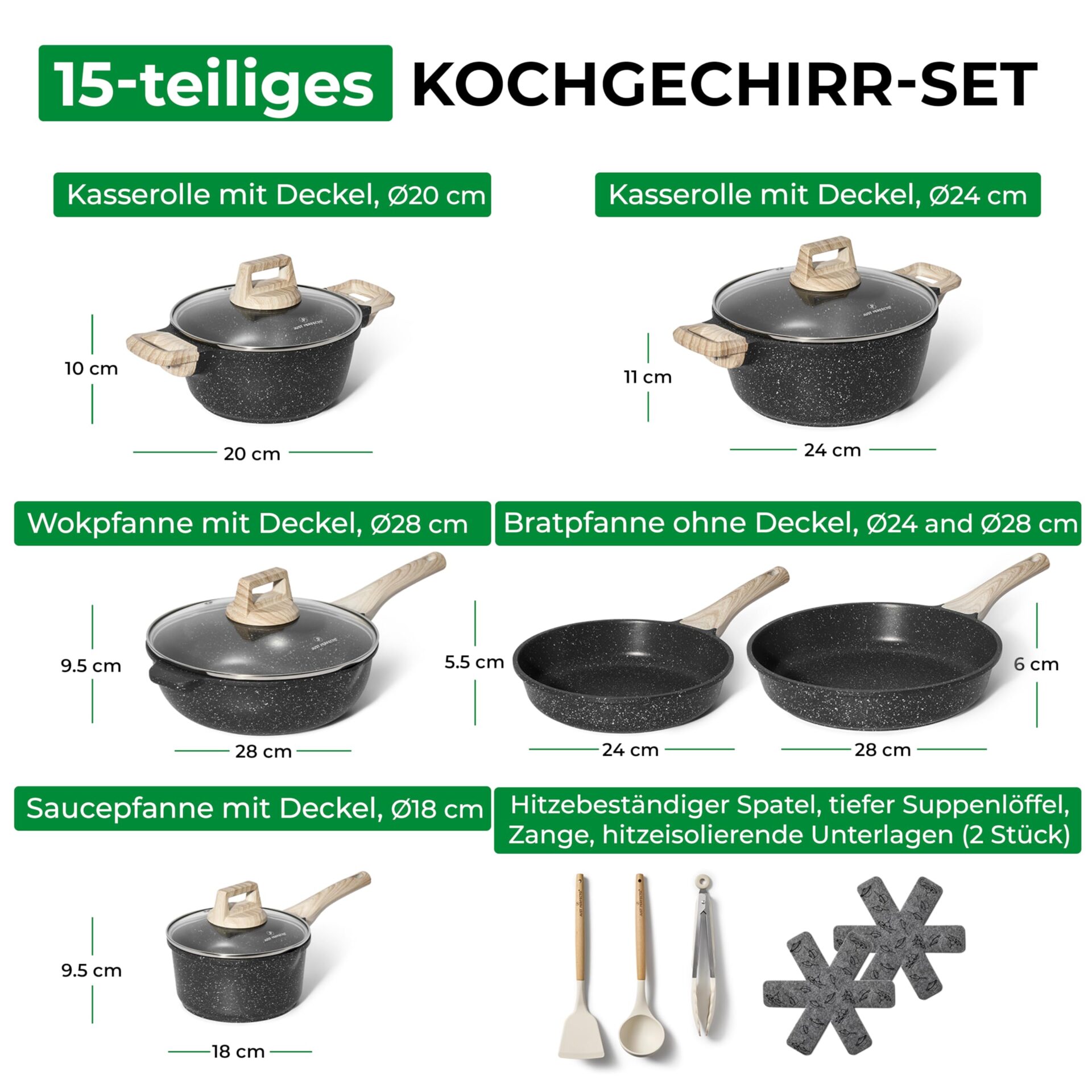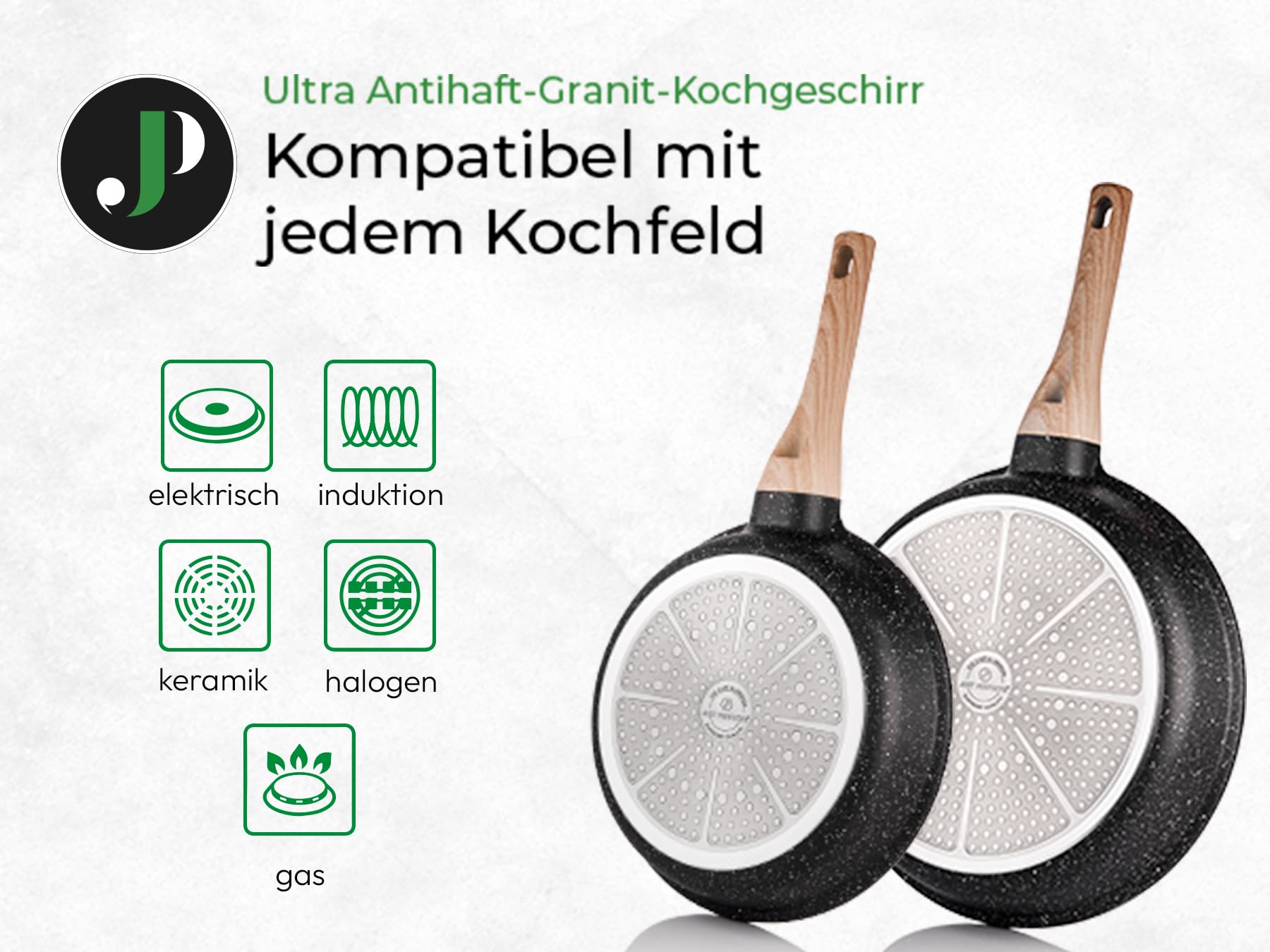 JL – Zaawansowany Zestaw Garnków Nieprzywierających – Granitowa Powłoka dla Łatwego Gotowania – Wszechstronny do Duszonych Potraw i Wypieków – Eleganc