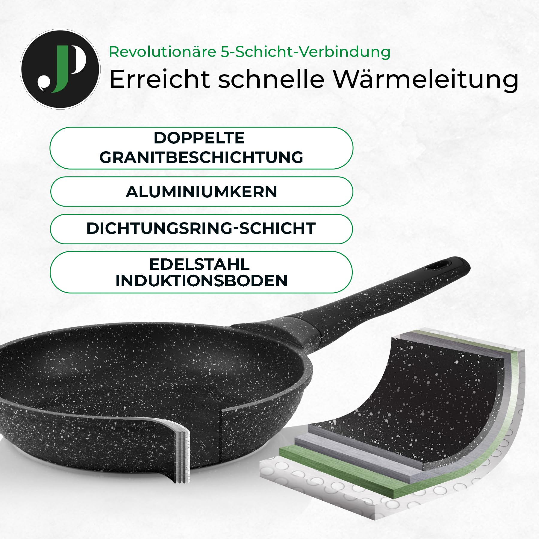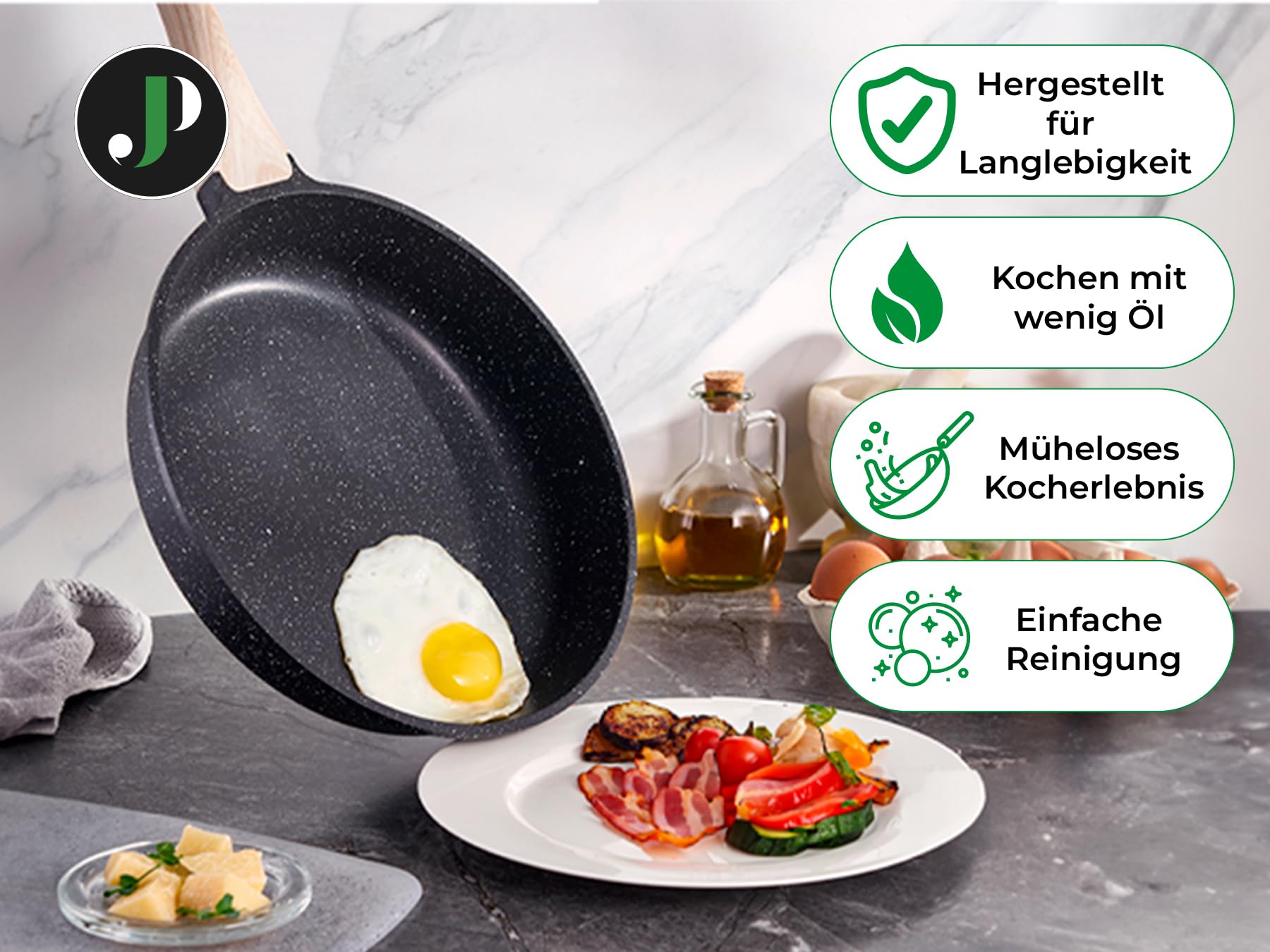 Patelnie i garnki JUST PERFECTO charakteryzują się doskonałą przewodnością cieplną, co zapewnia równomierne gotowanie i oszczędność energii. Dzięki zastosowaniu indukcyjnej technologii, zestaw jest kompatybilny z nowoczesnymi płytami grzewczymi, co czyni go idealnym wyborem dla współczesnych kuchni.