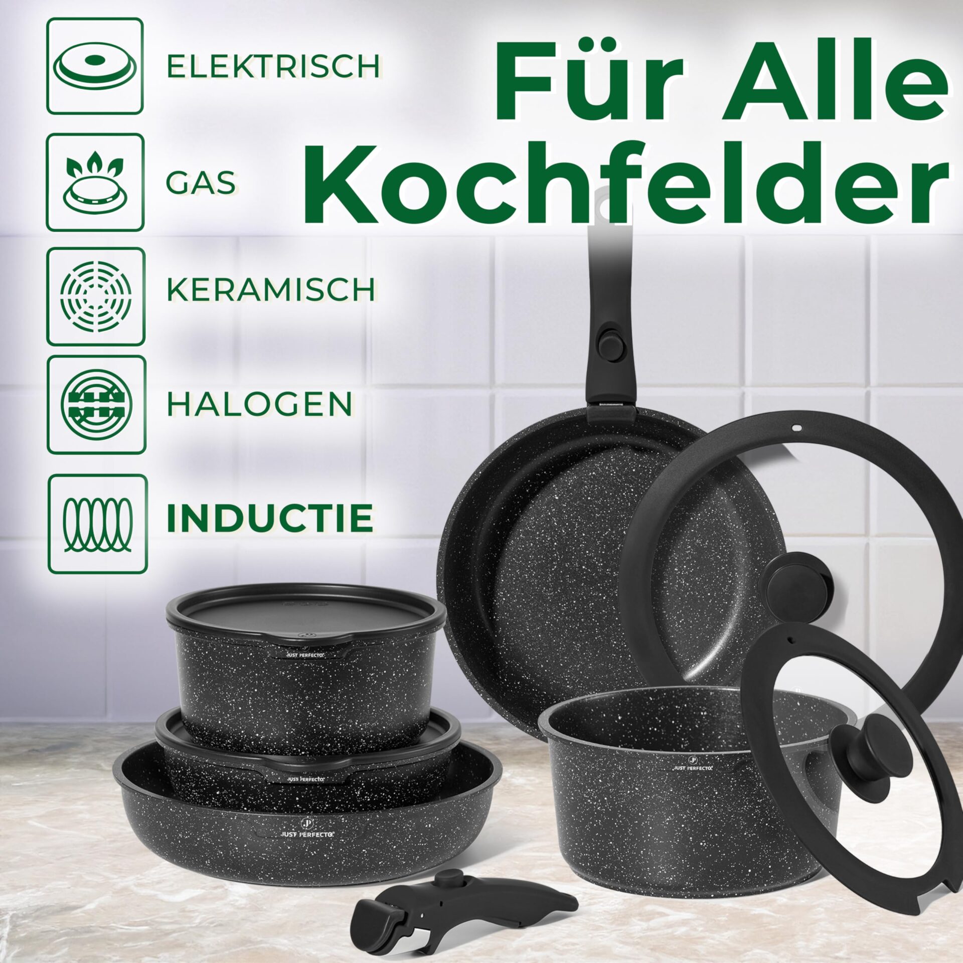 Zestaw Just Perfecto to must-have dla każdego miłośnika gotowania, który pragnie połączyć funkcjonalność z estetyką. Dzięki innowacyjnym rozwiązaniom, takim jak zdejmowane uchwyty i nieprzywierająca powłoka, gotowanie staje się przyjemnością, a nie obowiązkiem. Wybierając ten zestaw, inwestujesz w jakość, wygodę i styl, które z pewnością docenisz na co dzień.