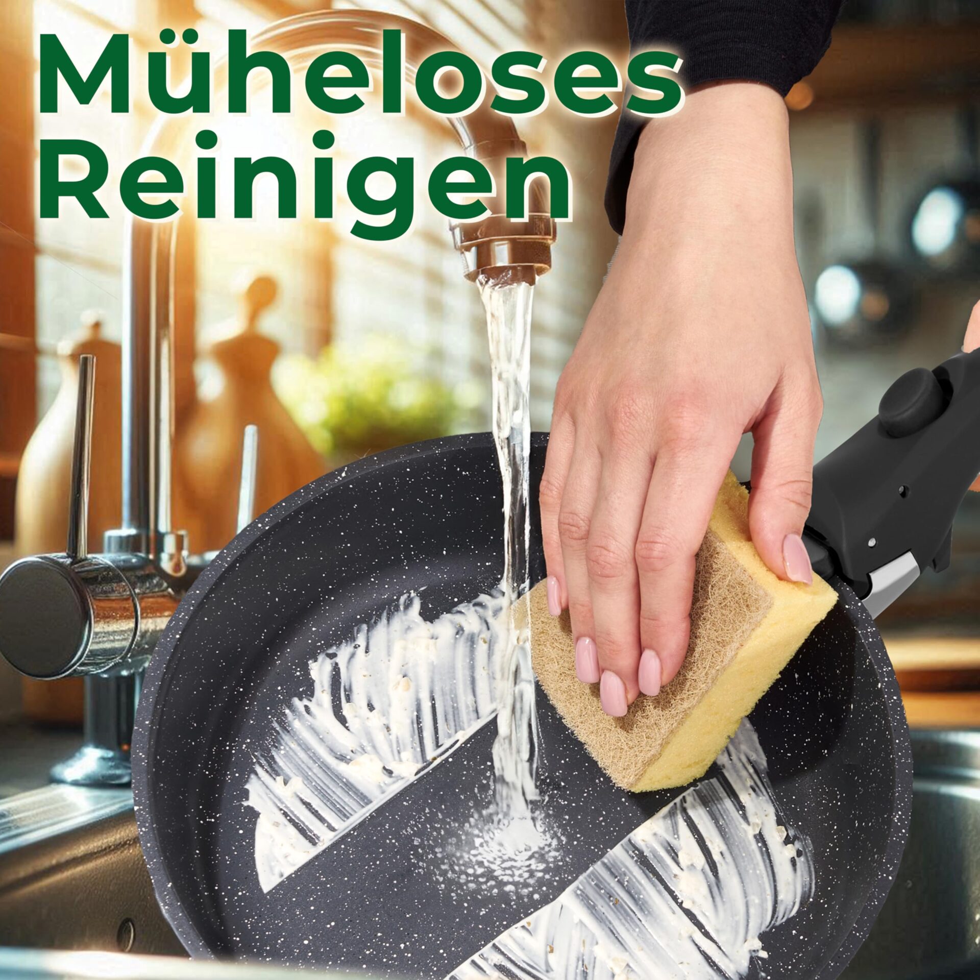 Jednym z kluczowych atutów tego zestawu jest innowacyjny system zdejmowanych uchwytów, który pozwala na oszczędność miejsca w kuchni. Dzięki temu garnki i patelnie można łatwo układać w stos, co jest szczególnie przydatne w małych przestrzeniach. Umożliwia to również łatwe przechowywanie i transport, co czyni zestaw idealnym dla osób często podróżujących lub mających ograniczoną przestrzeń.