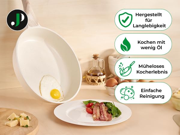 Zestaw Garnków JUST PERFECTO 14-Częściowy Indukcyjny Beżowy PTFE PFOA Free to idealne rozwiązanie dla każdego, kto ceni sobie jakość, funkcjonalność oraz estetykę w kuchni. Oto kluczowe cechy, które wyróżniają ten zestaw na tle konkurencji: