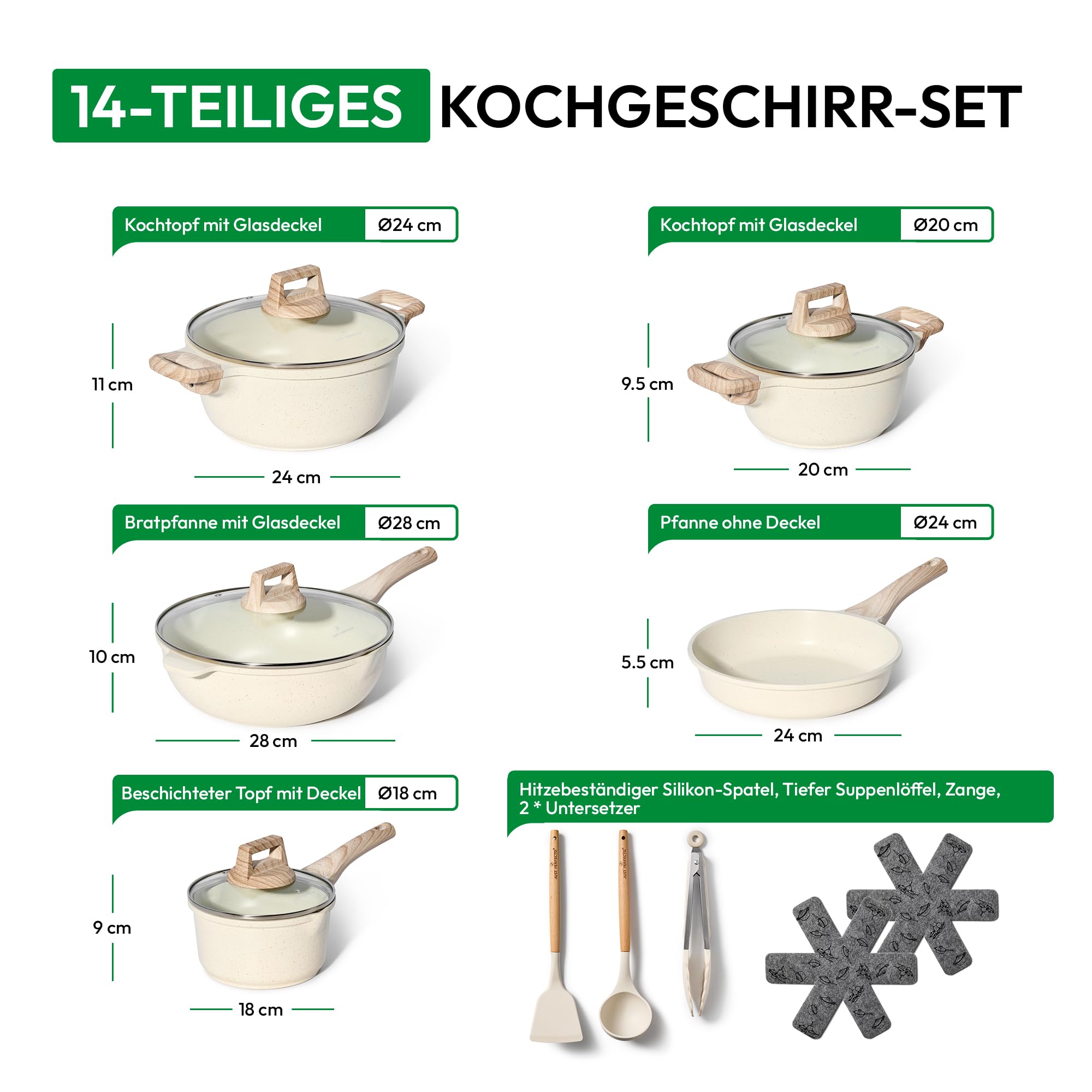 4. **Kompleksowość zestawu**: 14-częściowy zestaw obejmuje różne rozmiary garnków oraz patelni, co pozwala na przygotowanie różnorodnych potraw – od zup, przez dania główne, po desery. To idealne rozwiązanie zarówno dla singli, jak i dużych rodzin.