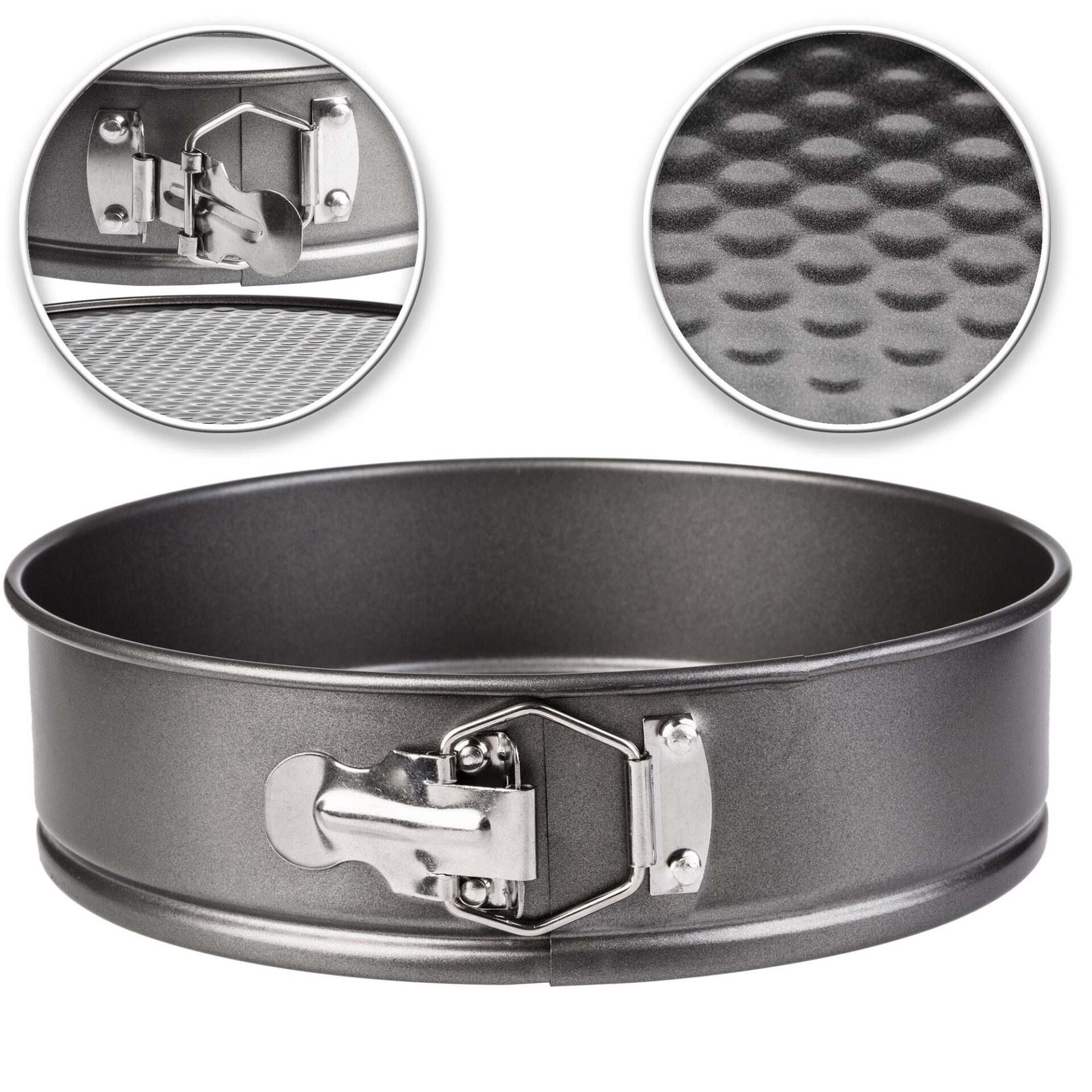 Forma posiada zatrzask, który zapewnia szczelność i równomierne rozprowadzenie ciepła podczas pieczenia. Dzięki temu ciasto wychodzi równomiernie upieczone z każdej strony, bez ryzyka przypalenia lub niedopieczenia.