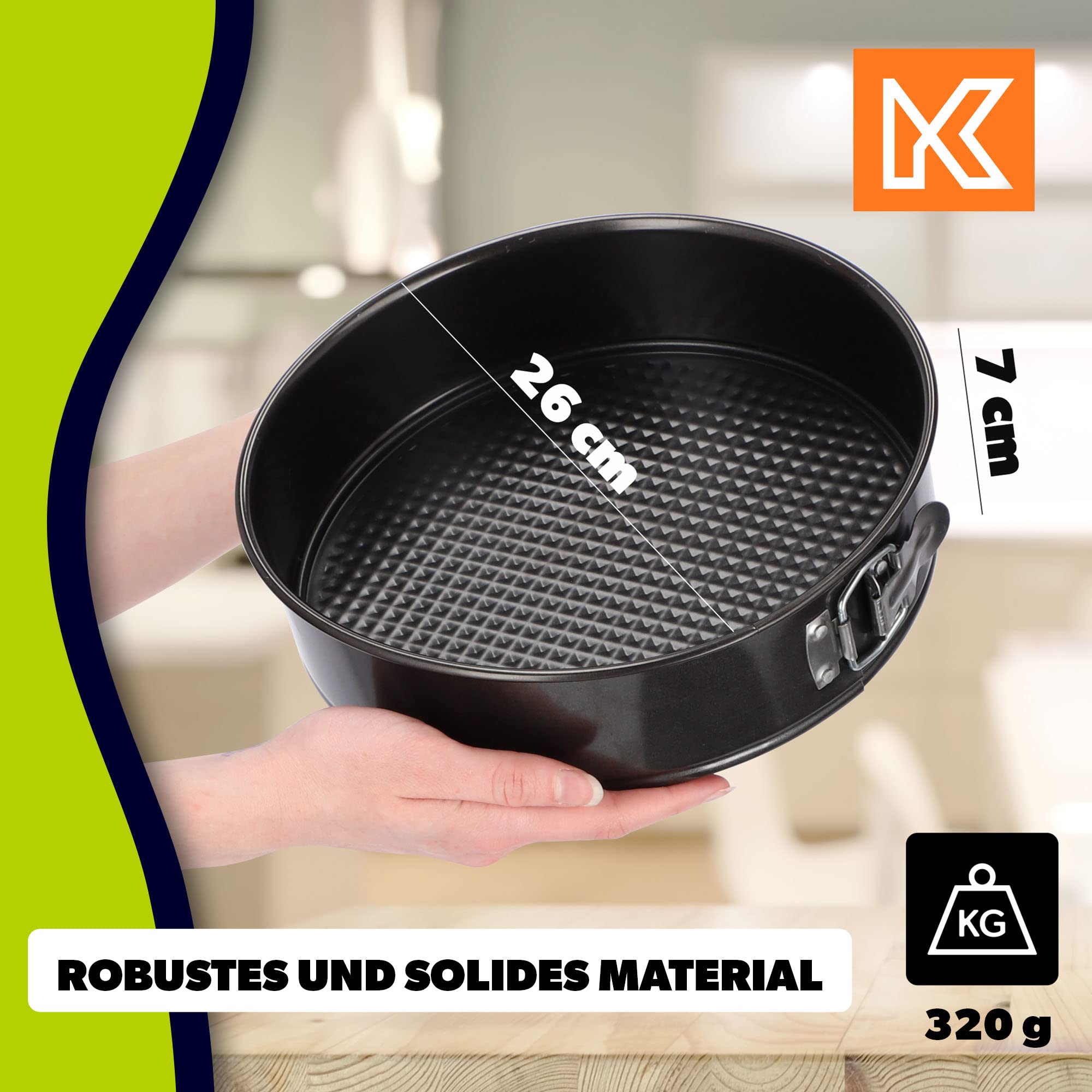 KADAX Forma do tortów Ø 26 cm to idealne narzędzie dla wszystkich miłośników pieczenia. Ta okrągła forma do pieczenia o średnicy 26 cm została wykonana z wysokiej jakości ocynkowanej stali, co sprawia, że jest trwała i odporna na uszkodzenia. Dodatkowo, forma została pokryta nieprzywierającą powłoką, co ułatwia wyciąganie gotowego ciasta bez konieczności używania tłuszczu czy mąki.