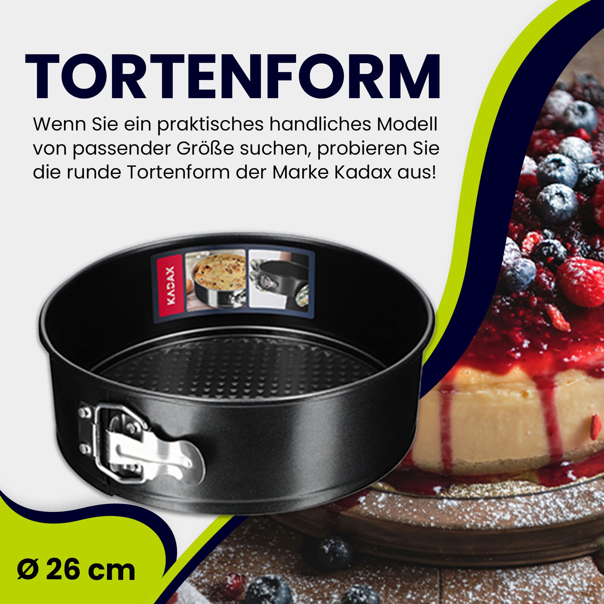 KADAX Tortownica Ø 26 cm z nieprzywierającą powłoką – forma do tortów z płaskim dnem, zabezpieczona przed wyciekiem