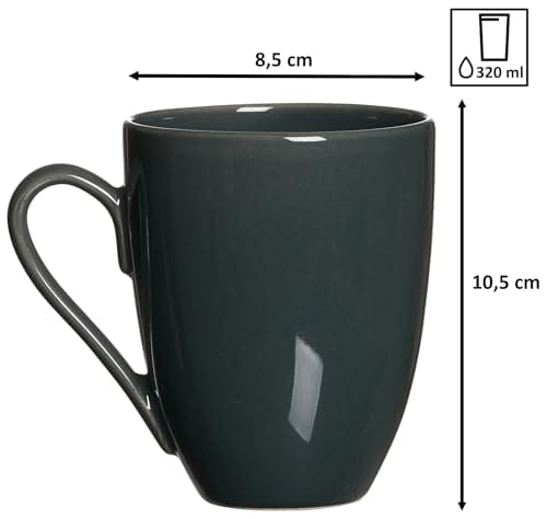 Składa się z: Składa się z następujących elementów: 4 kubki do kawy 320 ml, szare, 4 miski 16,5 cm, szare, 4 talerze śniadaniowe 20,5 cm, perła