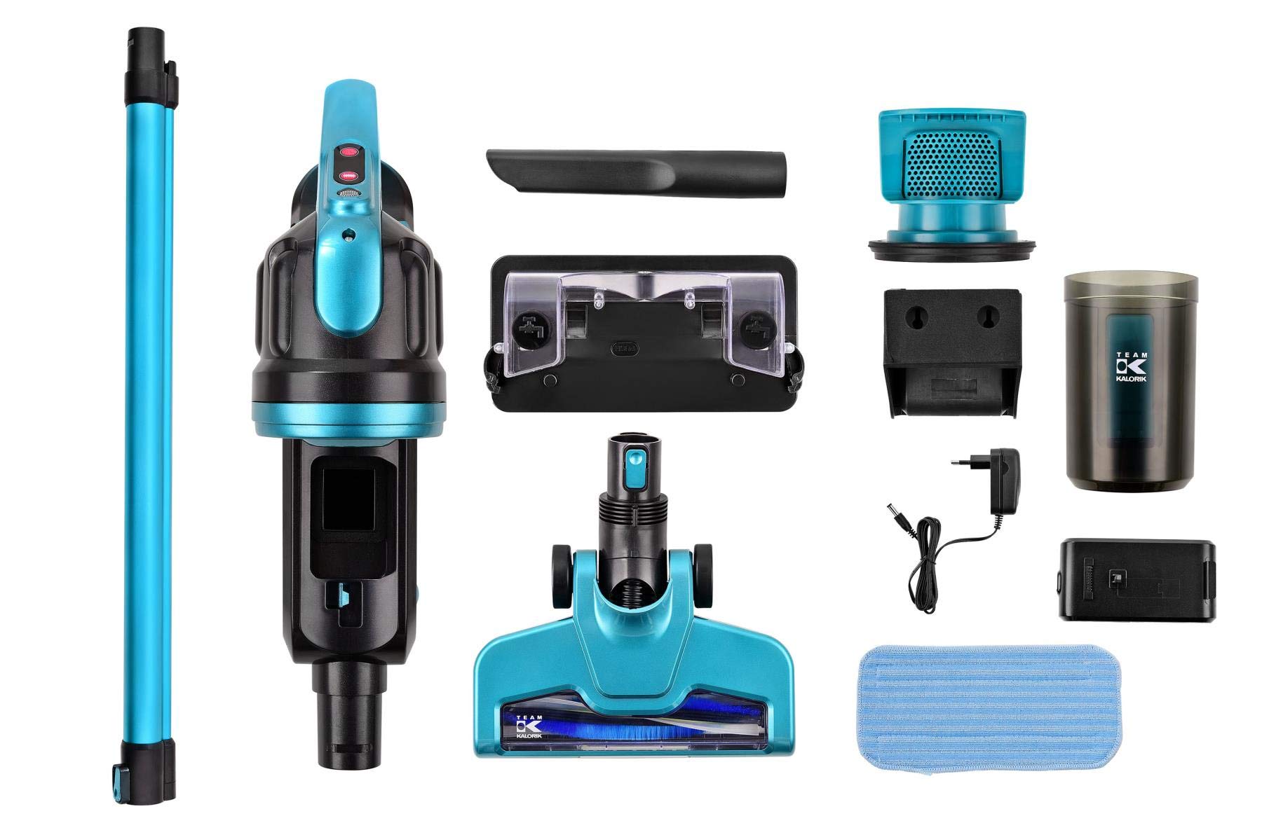 Kalorik TKG SKV 1006 to 3-w-1 akumulatorowy odkurzacz ręczny, który oferuje wiele funkcji i jest wszechstronnym narzędziem do sprzątania domu. Ten odkurzacz może być używany jako odkurzacz ręczny, odkurzacz na kiju do większych powierzchni oraz mop do mycia podłóg.