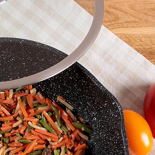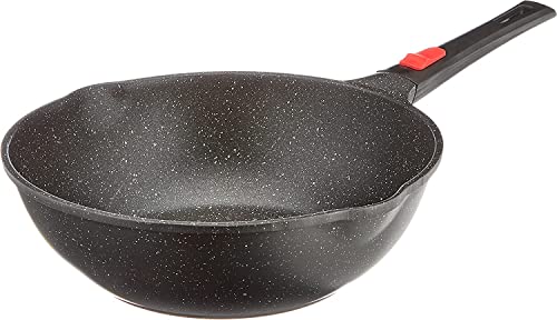 Kamberg – wok 30 cm – zdejmowany uchwyt – odlew aluminiowy – powłoka o wyglądzie kamienia – ze szklaną pokrywką – do wszystkich rodzajów kuchenek, również indukcyjnych, bez PFOA, aluminium