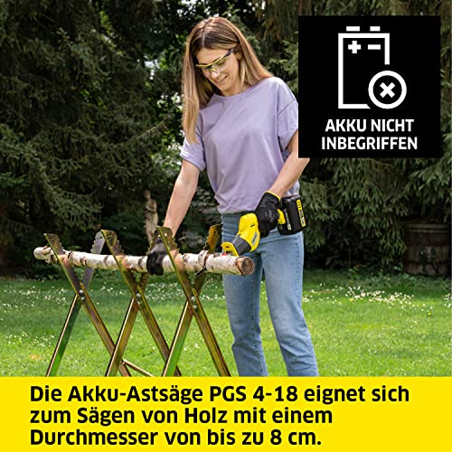 Kärcher Pilarka akumulatorowa 18 V PGS 4-18, do gałęzi o średnicy do 8 cm, odłączany uchwyt, ok. 120 cięć na jednym ładowaniu, może być używana z dostępnym oddzielnie akumulatorem Kärcher 18 V