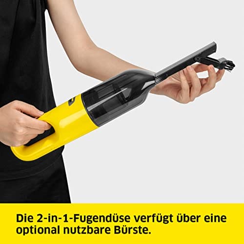 Kärcher CVH 2 Odkurzacz Ręczny Żółty/Czarny to doskonałe urządzenie do szybkich prac czyszczących. Odkurzacz posiada moc ssania wynoszącą 8 W, dzięki czemu bez trudu usuwa okruchy, kurz i lekkie zabrudzenia z powierzchni, tapicerki i szczelin. Kompaktowy design oraz niewielka waga (0,65 kg) sprawiają, że odkurzacz jest bardzo poręczny i idealny do szybkiego użycia w dowolnym momencie.