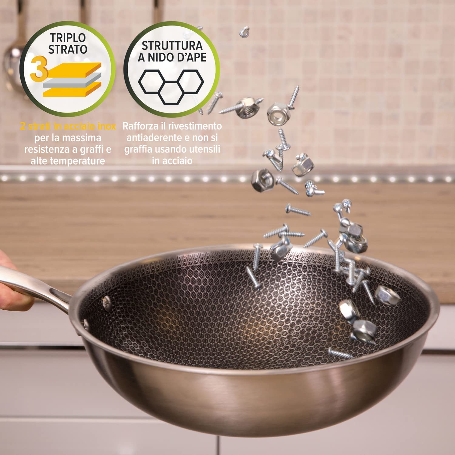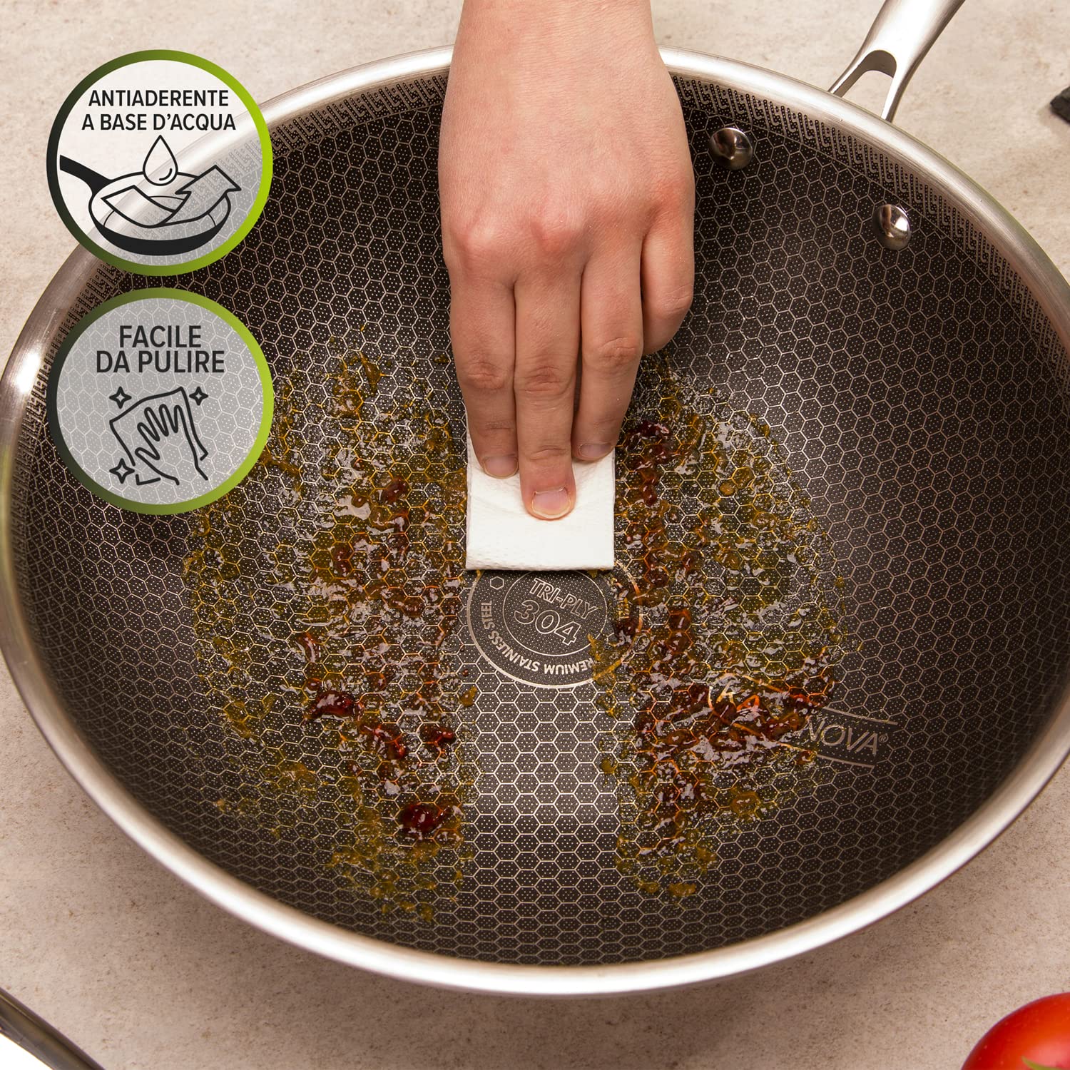 💪 Solidna konstrukcja:: 💪 Solidna konstrukcja: Tri-Ply z warstwami ze stali nierdzewnej i aluminium dla szybkiego i równomiernego rozprowadzania ciepła.