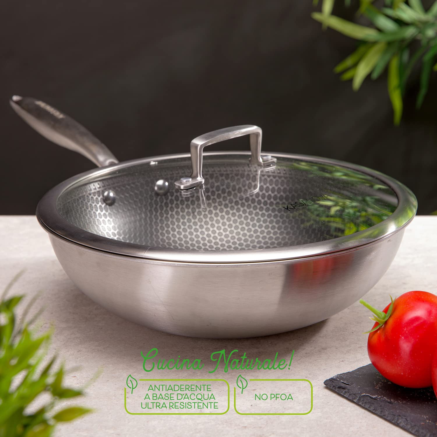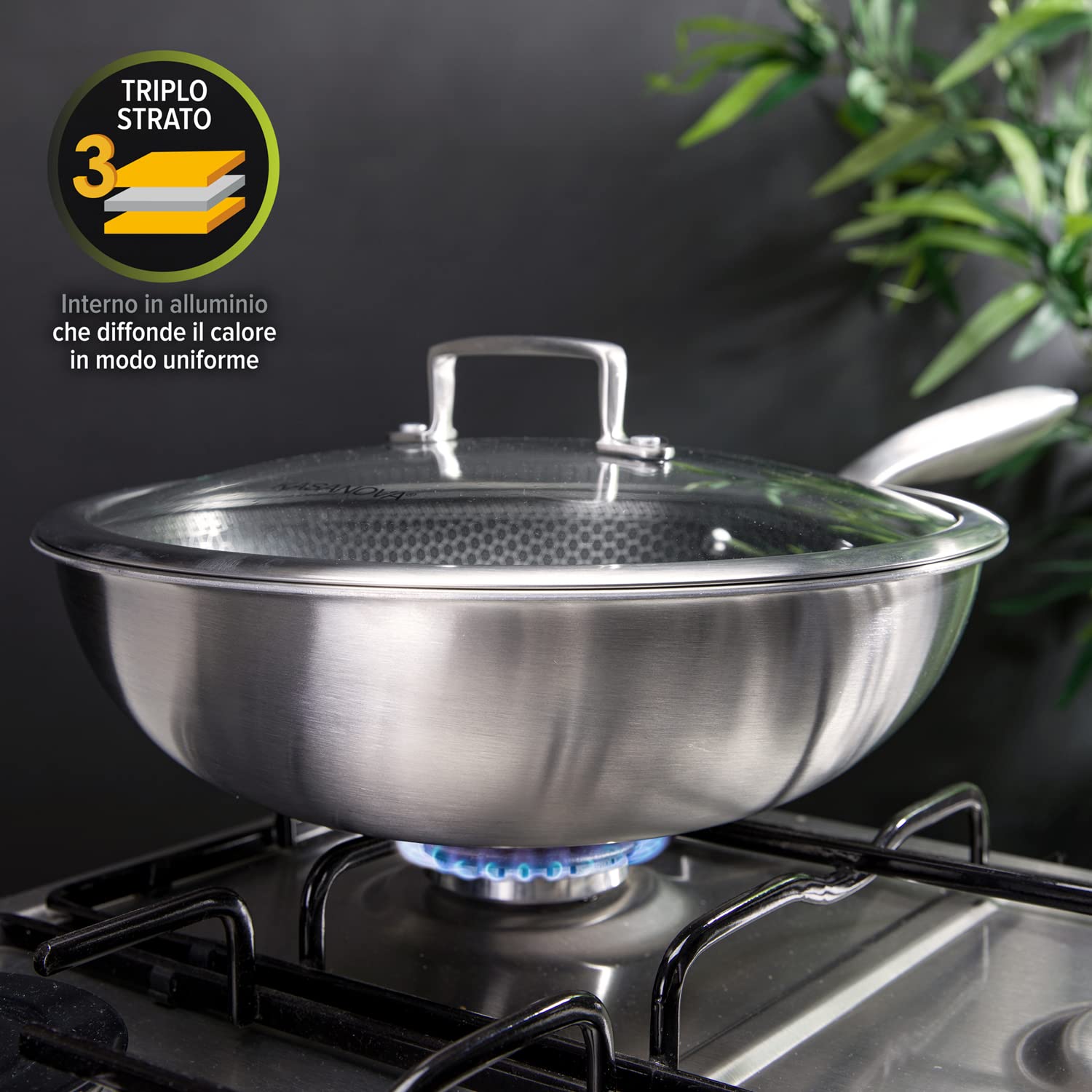 Wok trójwarstwowy 28 cm z 3-warstwową pokrywą