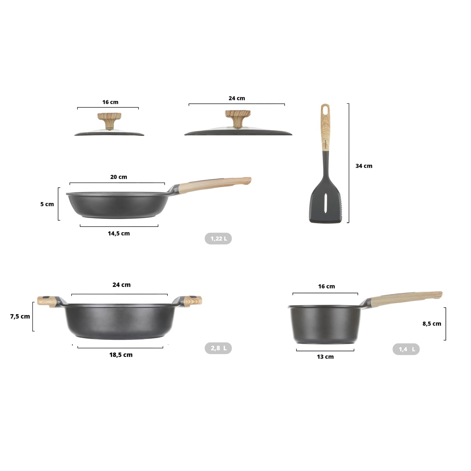 KASANOVA Zestaw garnków Evolution z powłoką nieprzywierającą do płyt indukcyjnych – Garnki do indukcji i każdego rodzaju płyty grzewczej. (6 sztuk)