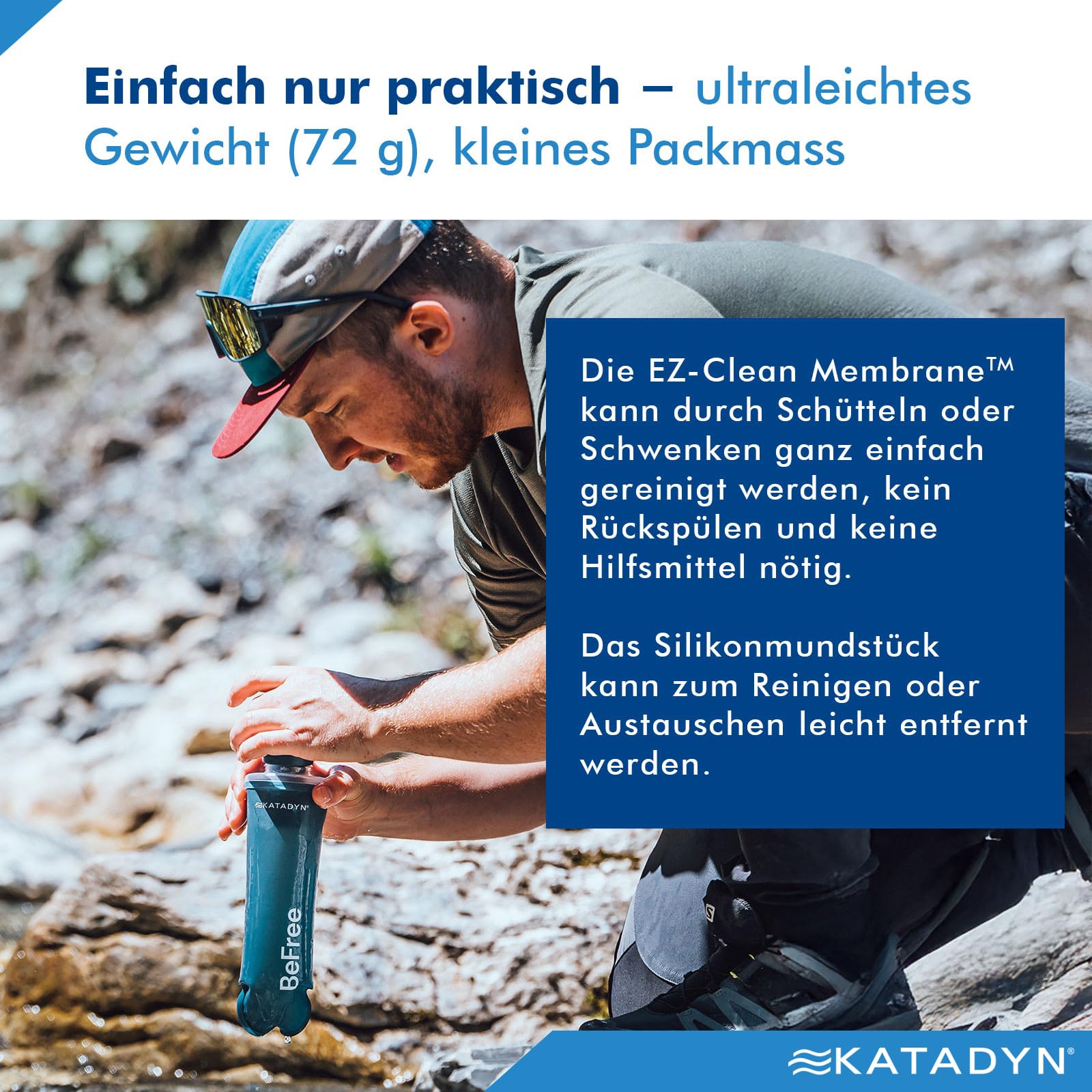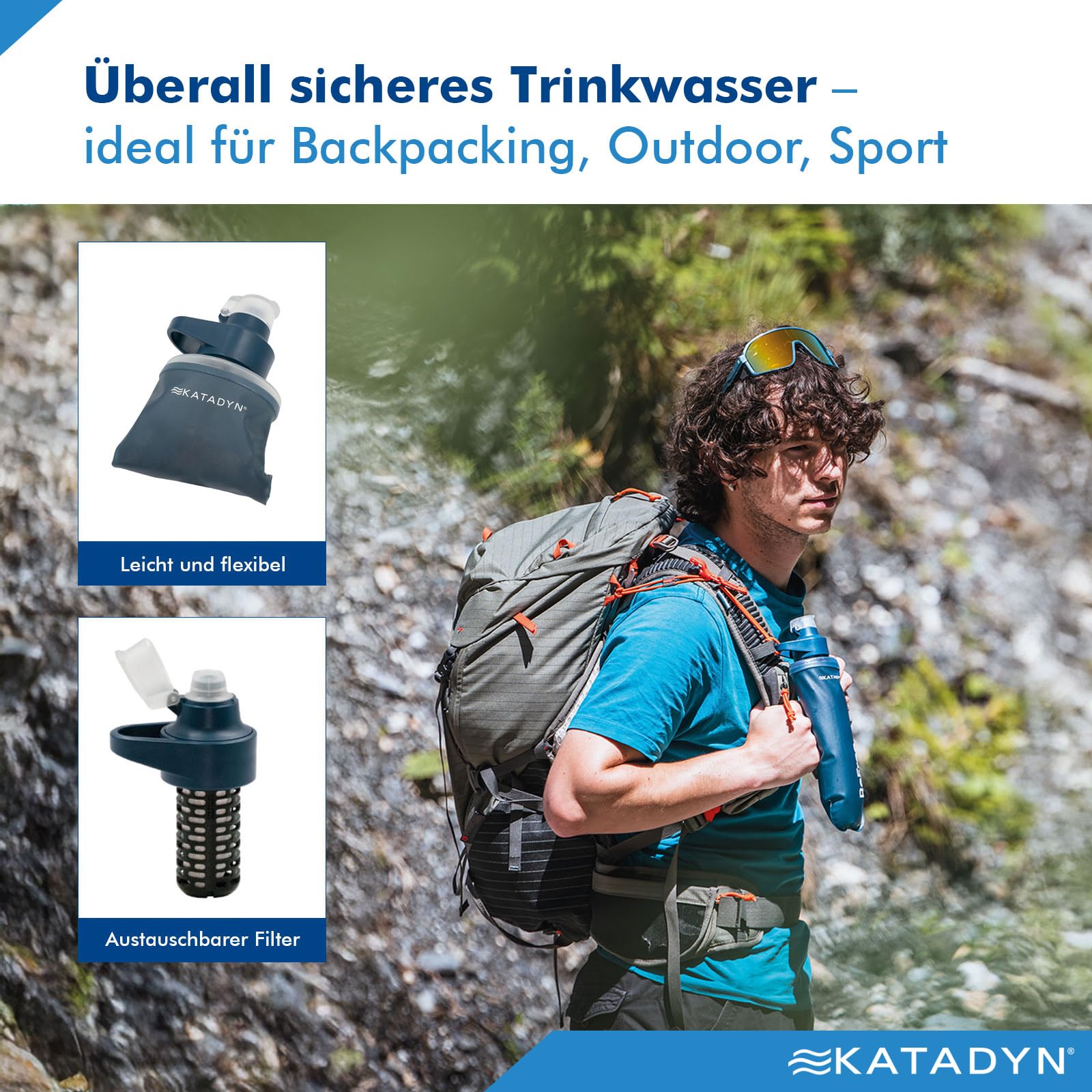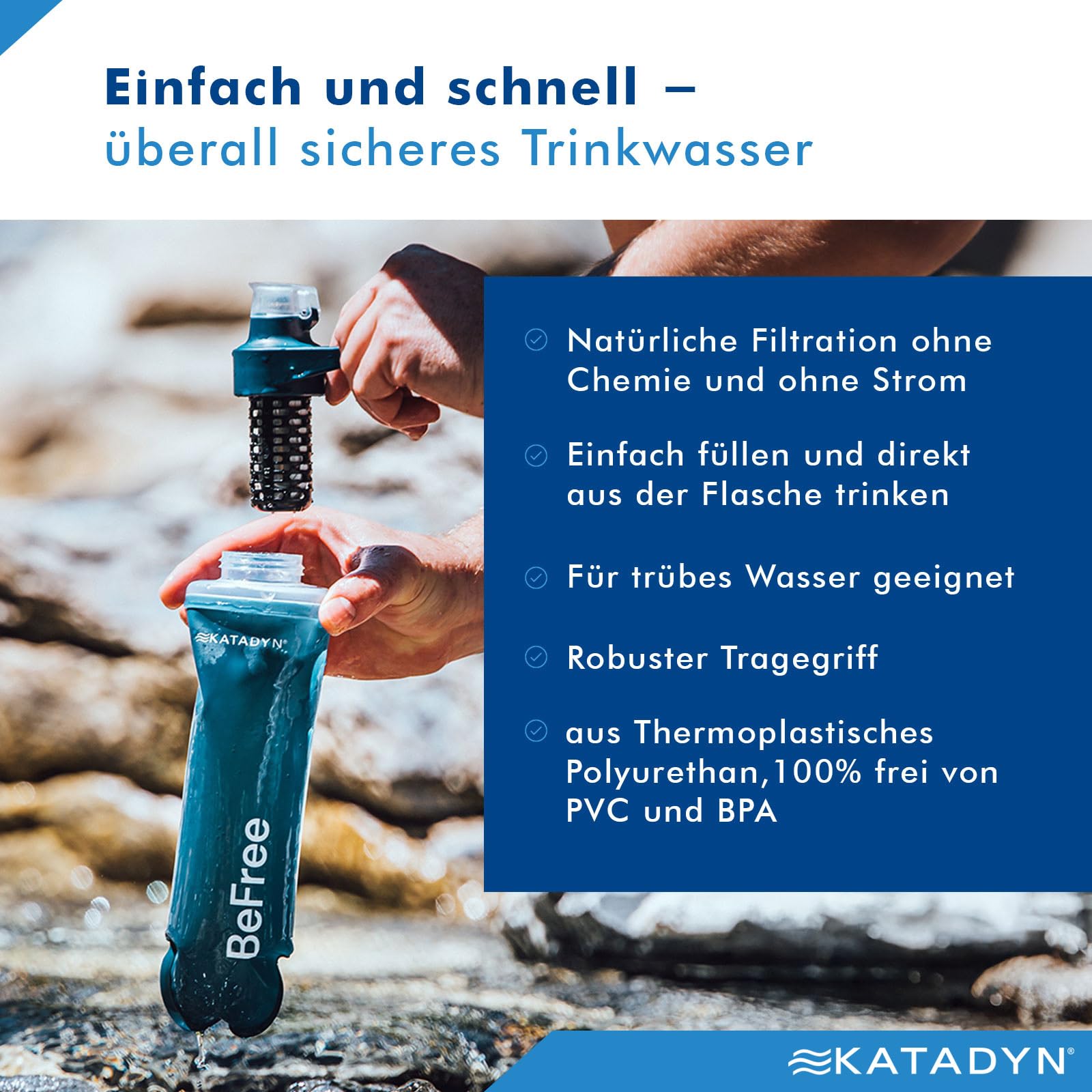Katadyn BeFree filtr do wody AC 0,5 l – łupkowy niebieski, ultralekka butelka filtrująca z węglem aktywnym i membraną EZ-Clean ™ – zawsze i wszędzie bezpieczna woda pitna, idealny do aktywności na