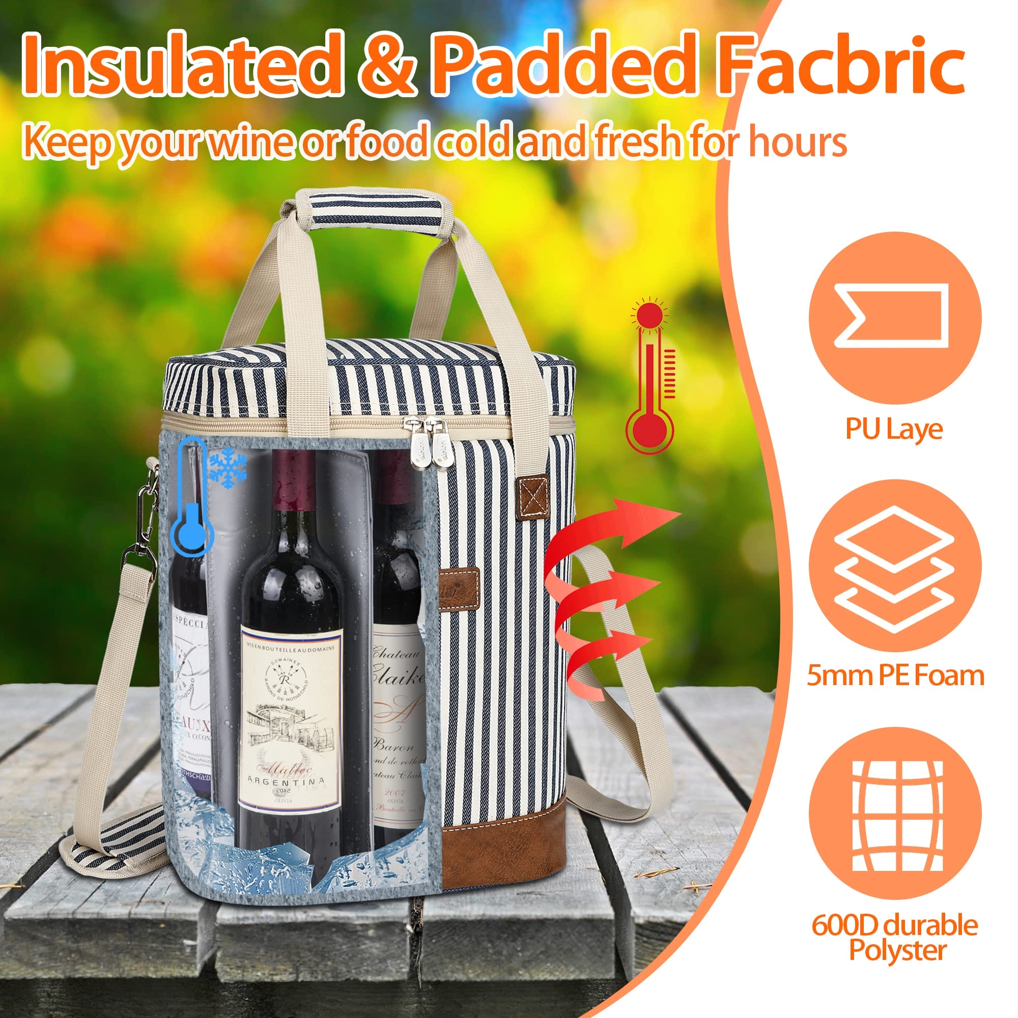 3. Skuteczna izolacja – Dzięki zastosowaniu materiałów izolacyjnych o wysokiej jakości, torba utrzymuje odpowiednią temperaturę napojów przez wiele godzin. Nawet w gorące letnie dni, możesz cieszyć się chłodnym winem i mieć najlepsze doświadczenia degustacyjne.