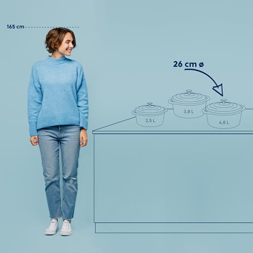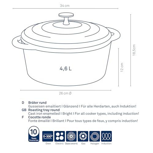 ✅ Dzięki emaliowaniu brytfanna: Dzięki emaliowaniu brytfanna może być mocno podgrzana i nadaje się do duszonych potraw z dużą ilością bulionu/sosu, które dzięki temu zachowują swój pełny smak lub również do pieczenia chleba