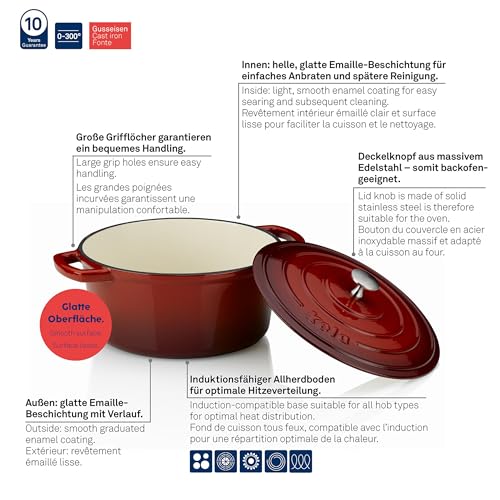 ✅ Zakres dostawy: 1: Zakres dostawy: 1 x żeliwna brytfanna okrągła CALIDO czerwona, wymiary Ø 26 x 12 cm, 4,6 litra (art. nr 11948), materiał: żeliwo emaliowane, nadaje się do piekarnika do 300°C