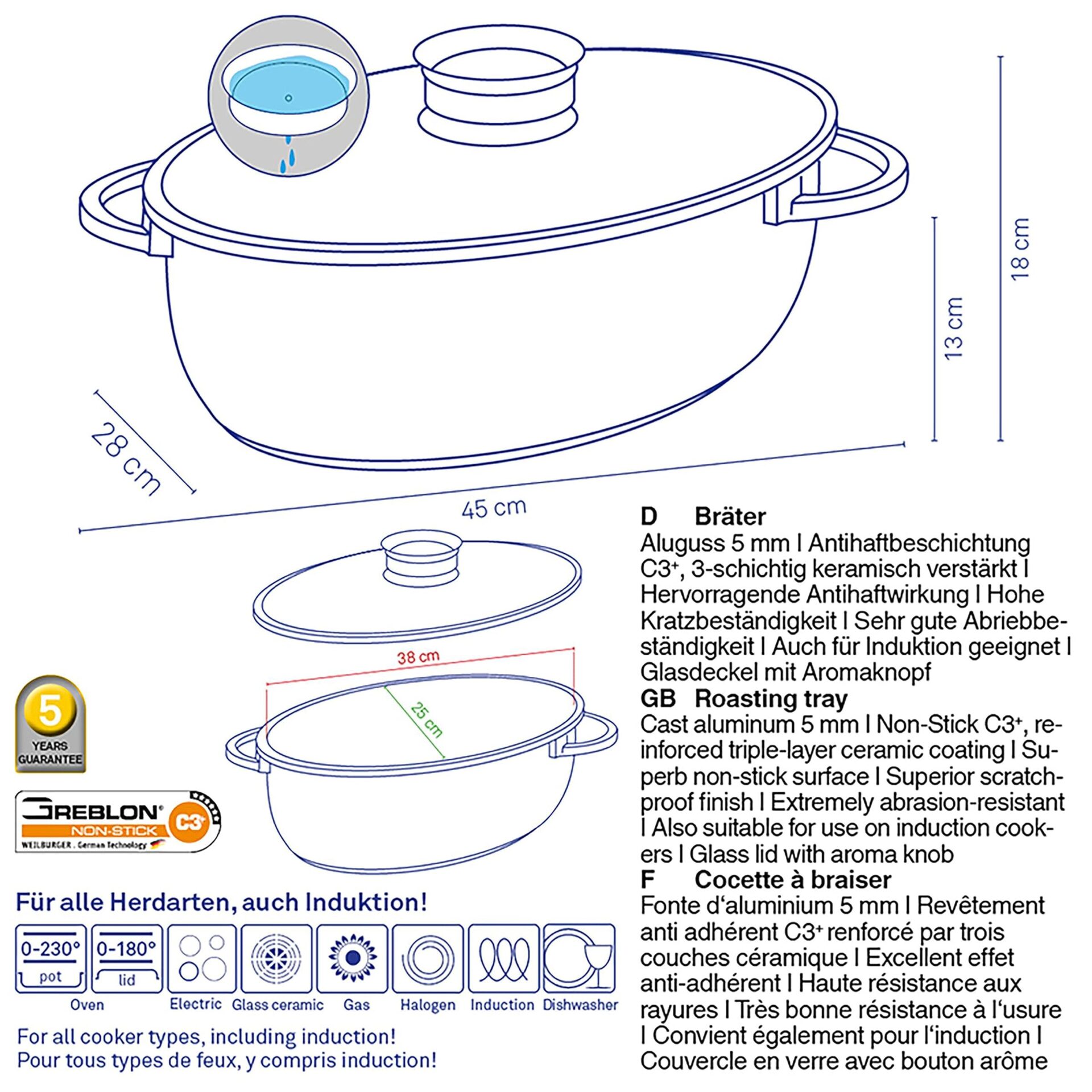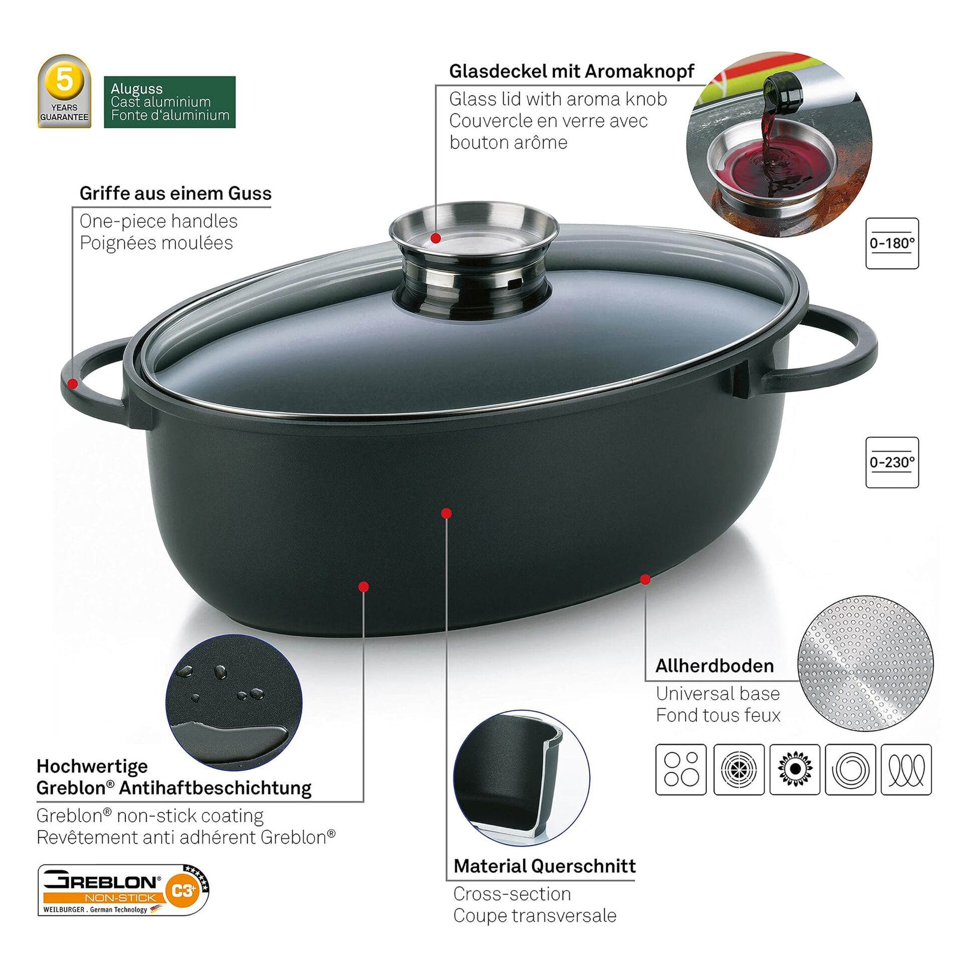 ✅ Szczególna przyjemność nie: Szczególna przyjemność nie tylko w okresie Bożego Narodzenia: owalne naczynie do pieczenia z ognioodporną szklaną pokrywką i przyciskiem aromatycznym do niedzielnego smażenia lub na Boże Narodzenie – odpowiednie do kuchenek gazowych, ceramicznych, elektrycznych i indukcyjnych