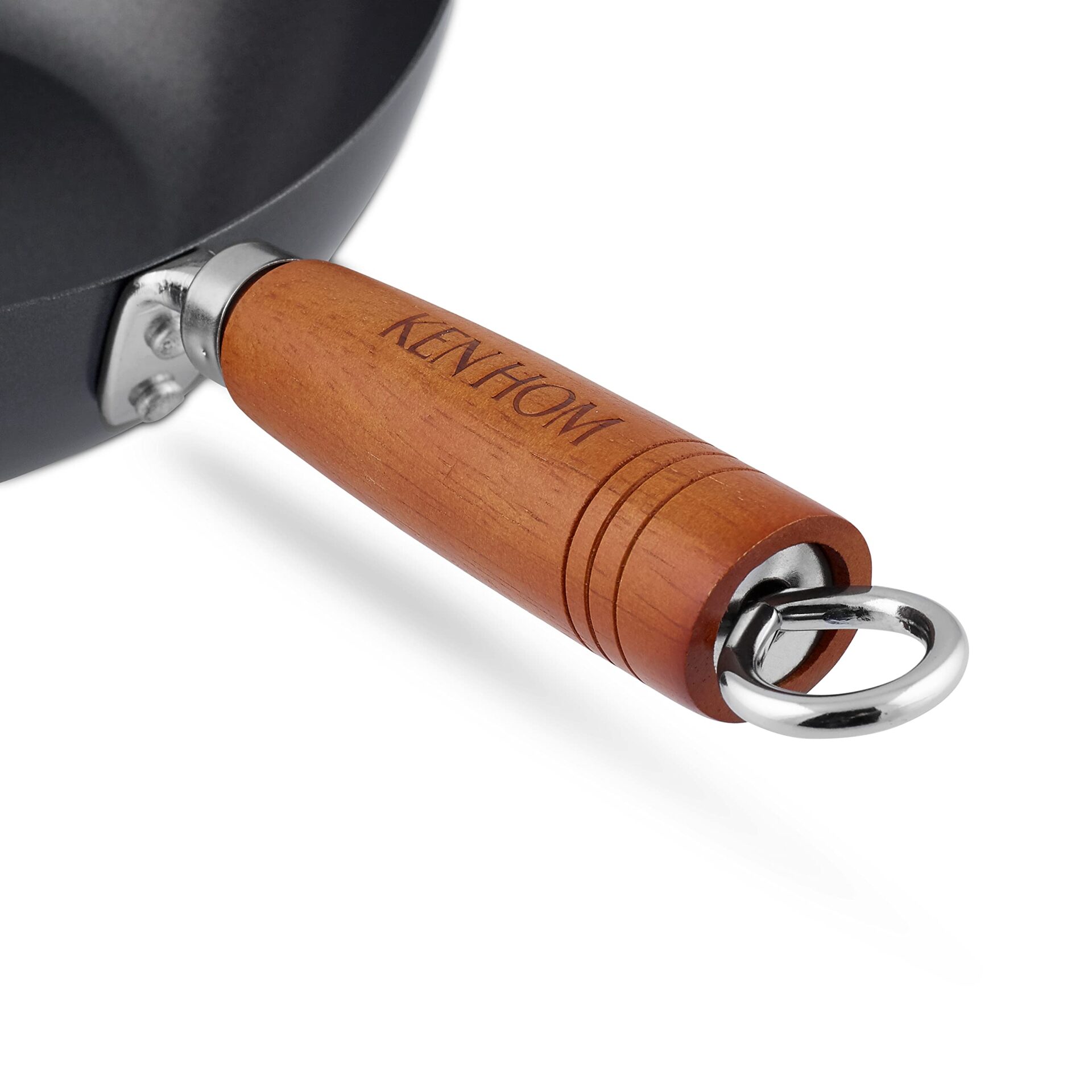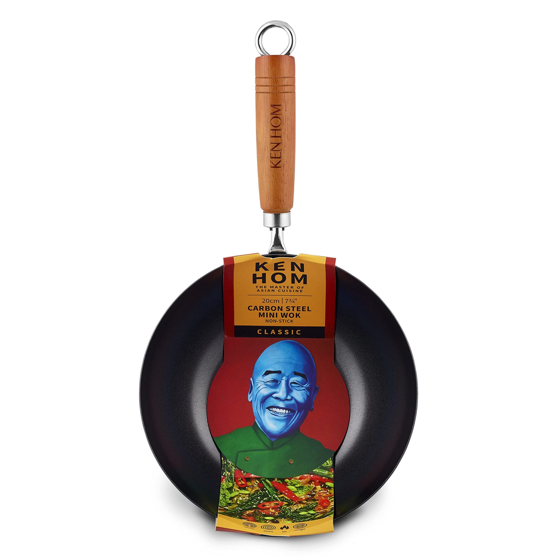 Ken Hom Classic Wok ze Stali Węglowej, Czarny/Drewniany, 20 cm