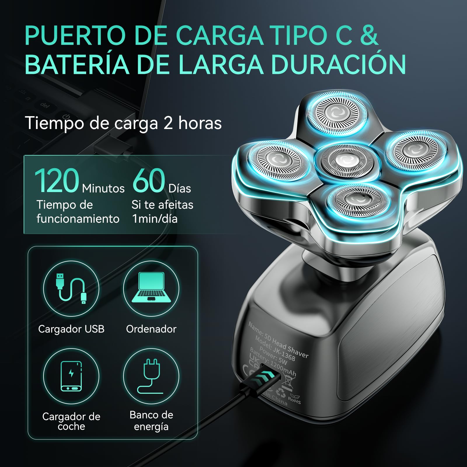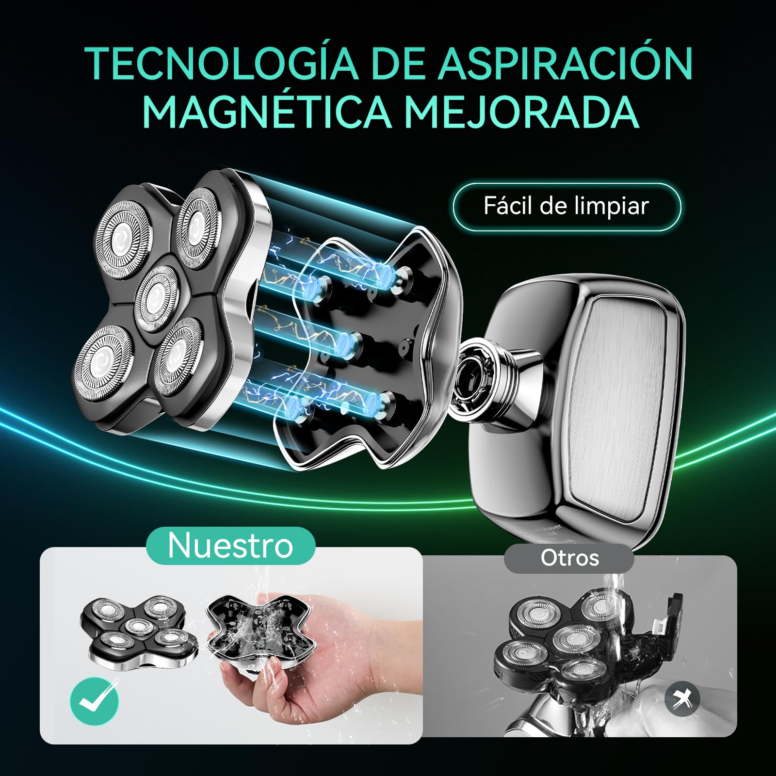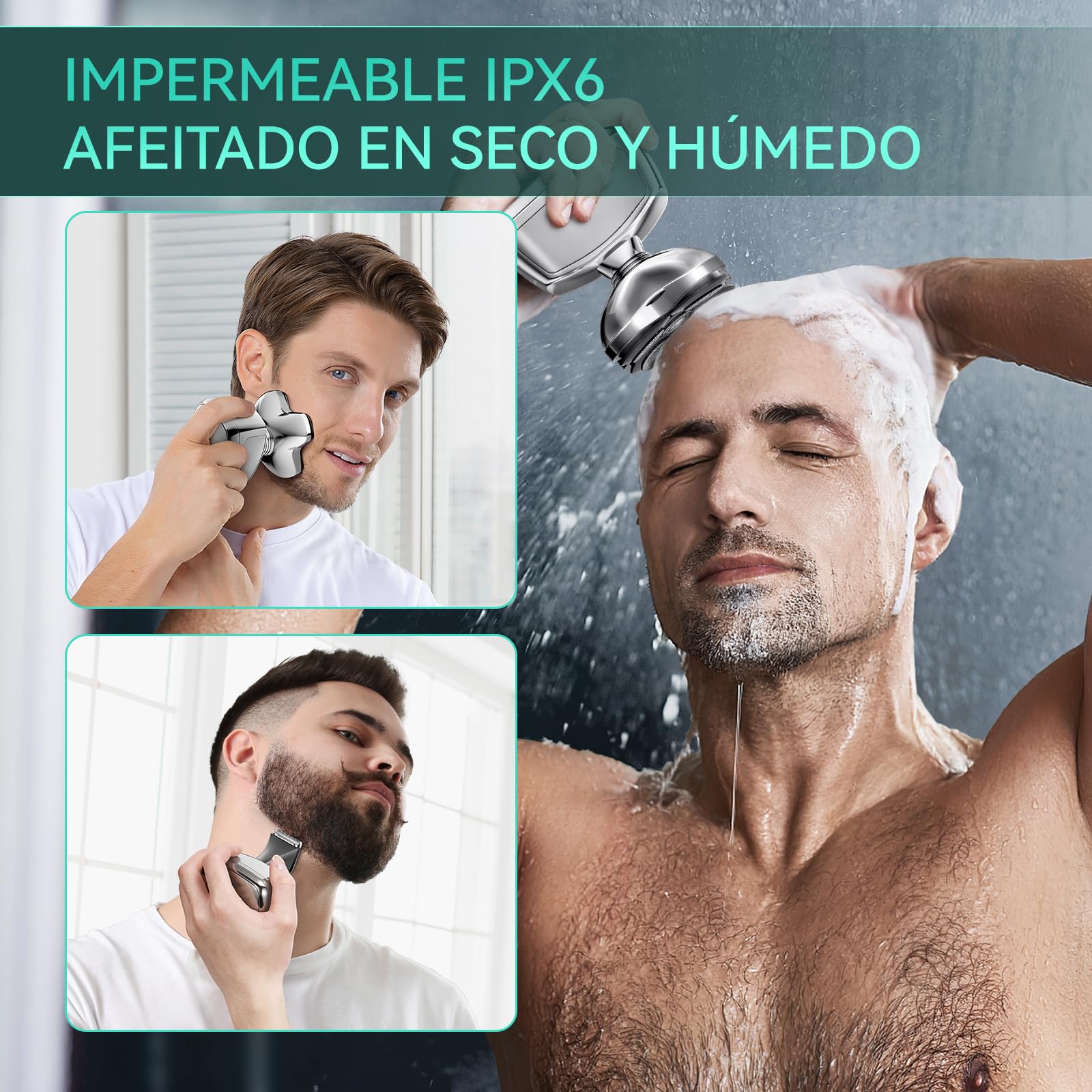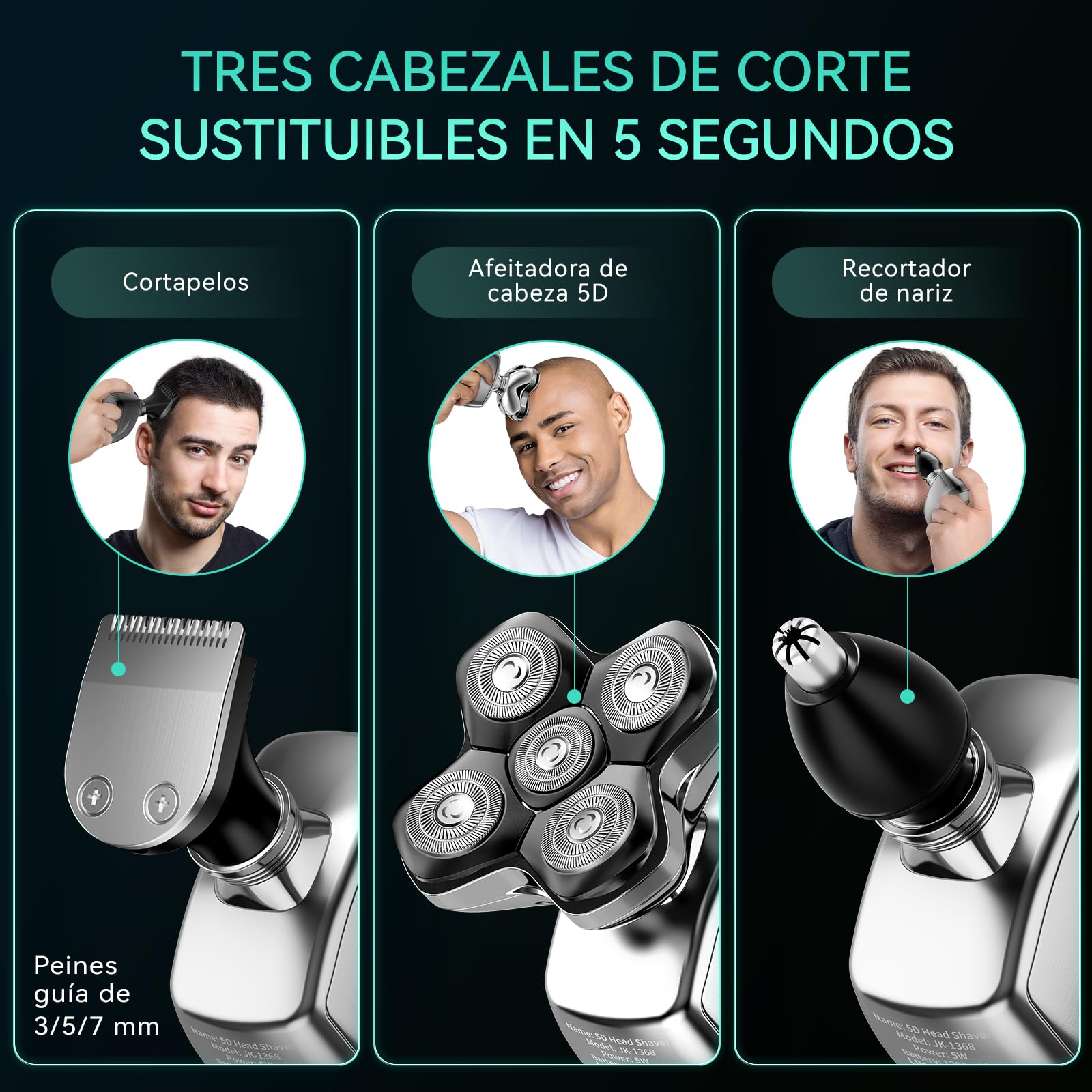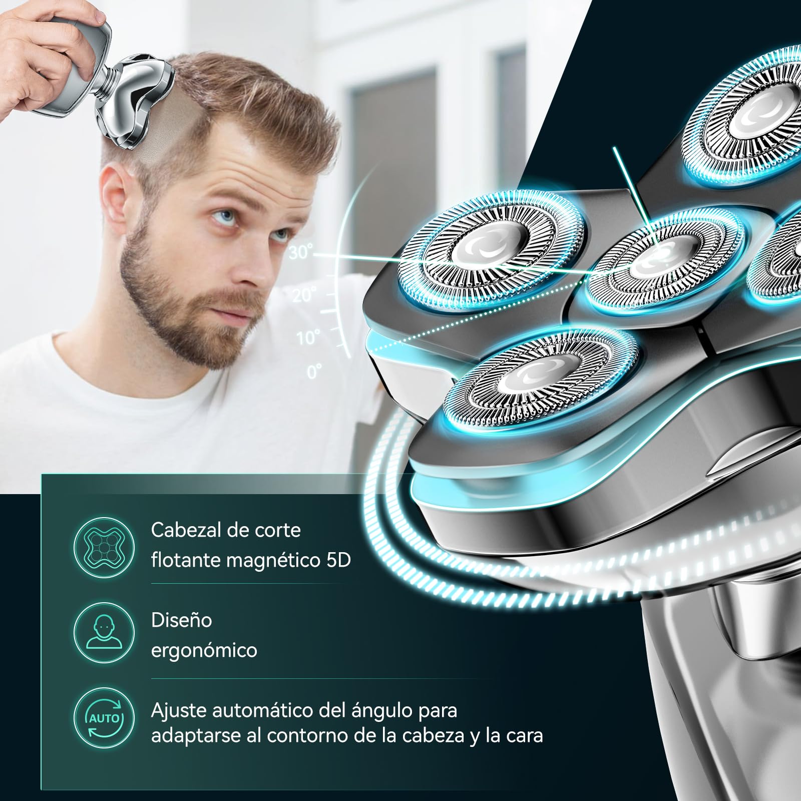 Golarka głowa łysy mężczyzna 3w1 z 5D głowicami magnetycznymi – maszynka do golenia głowy, strzyżenia nosa, wyświetlaczem LED IPX6, wodoodporna