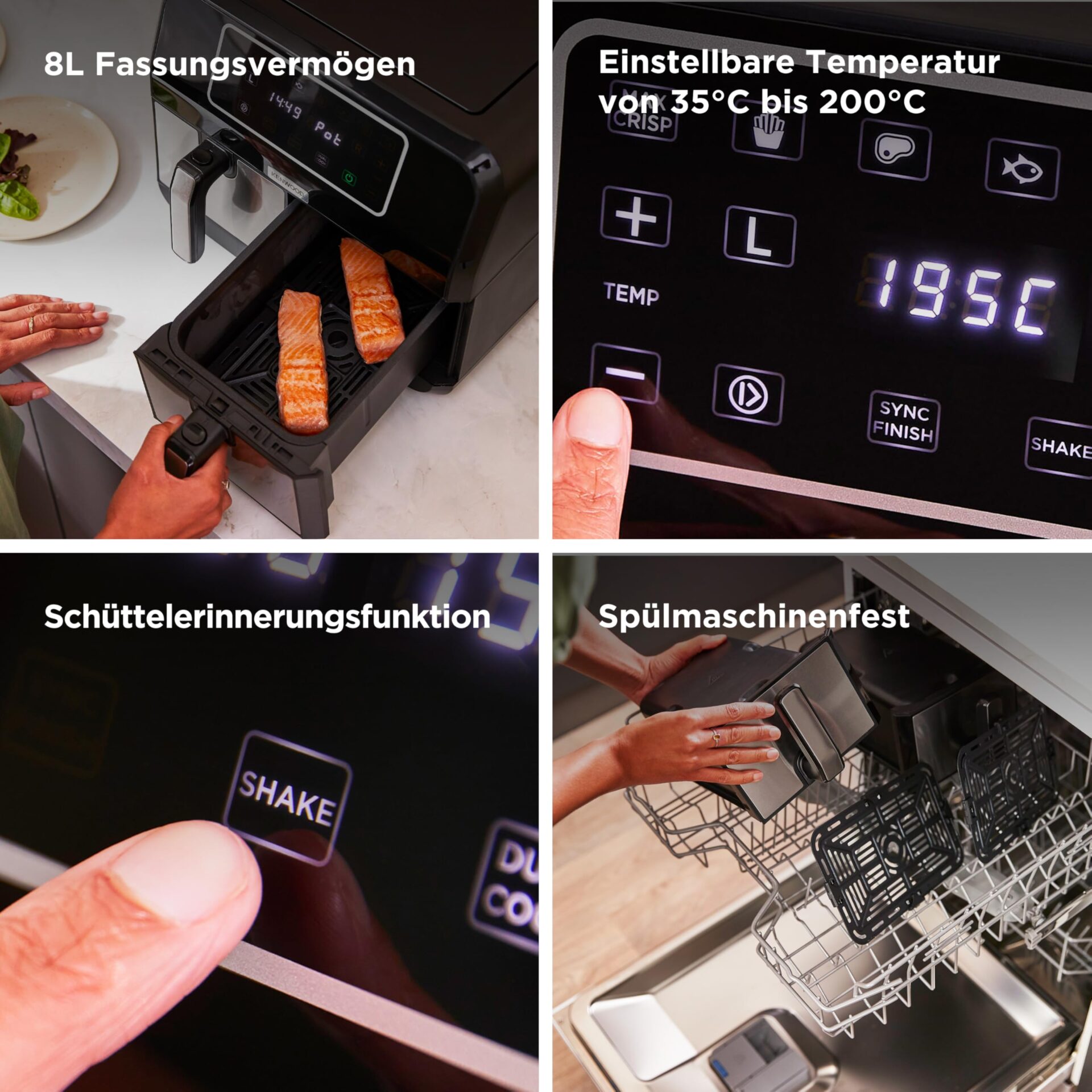 Kenwood kHealthy Fry Twin Airfryer 8 l to doskonałe rozwiązanie dla tych, którzy cenią sobie wygodę, zdrowe gotowanie i różnorodność w kuchni. Dzięki innowacyjnym funkcjom, takim jak Dual Cook i Sync Finish, oraz dziewięciu prostym w obsłudze programom, przygotowanie smacznych potraw nigdy nie było łatwiejsze. Inwestując w to urządzenie, gwarantujesz sobie pyszne, zdrowe posiłki w każdej chwili. Pozwól sobie na oszczędność czasu i energii, a jednocześnie ciesz się z jedzenia, które kochasz!