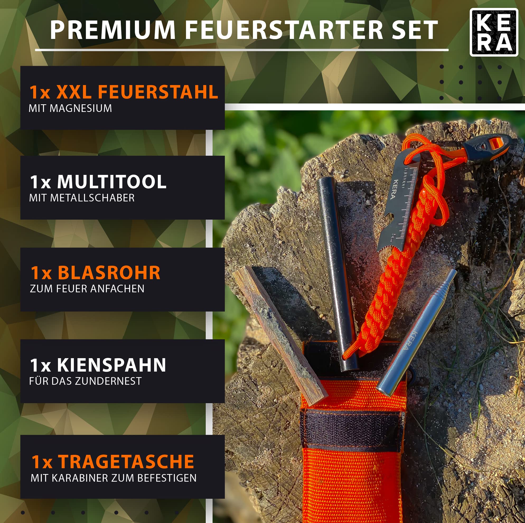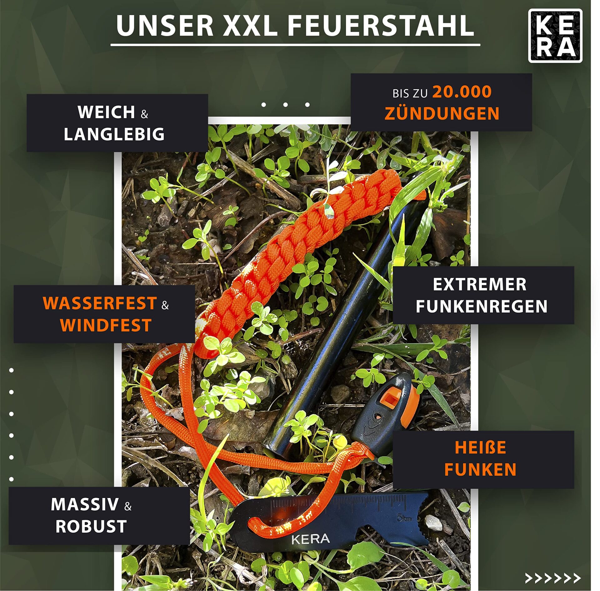 KERA Krzesiwo XXL z Torbą i Linką Paracord – Wieczna Zapalniczka Outdoorowa
