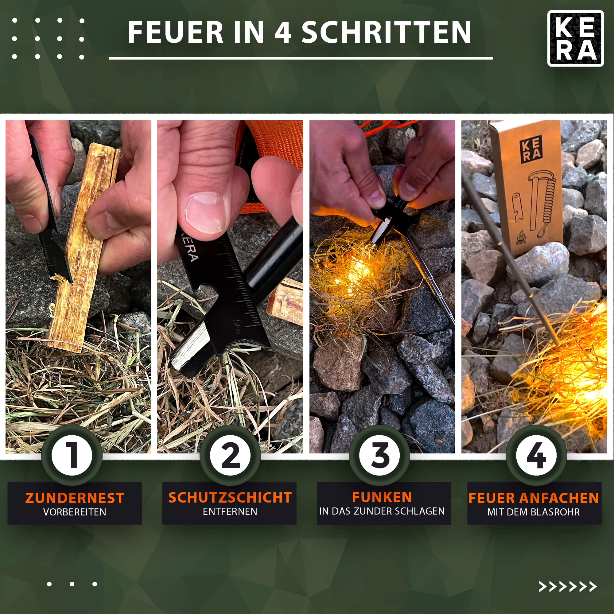 1. **Wysoka jakość wykonania**: Krzesiwo KERA zostało zaprojektowane z myślą o ekstremalnych warunkach. Wykonane z magnezu, zapewnia niezawodność i długowieczność, co czyni je idealnym towarzyszem w trudnych sytuacjach.
