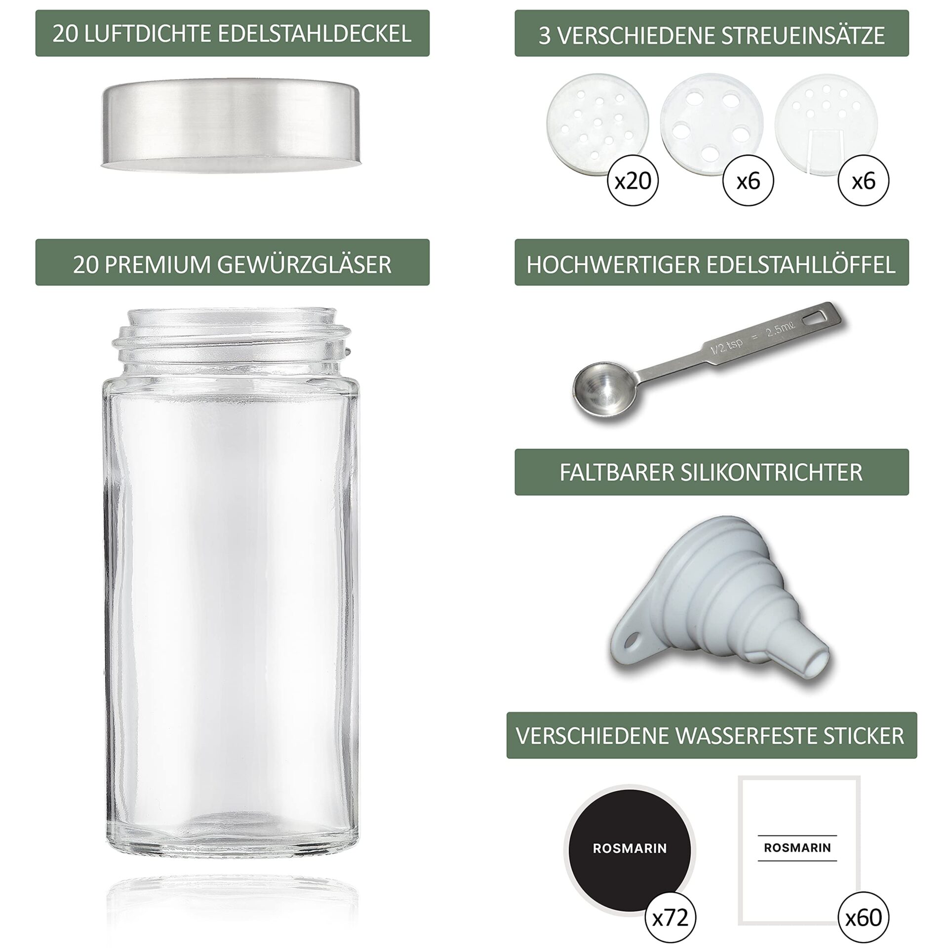 Kesign Zestaw 20 słoików na przyprawy – Ekskluzywna organizacja