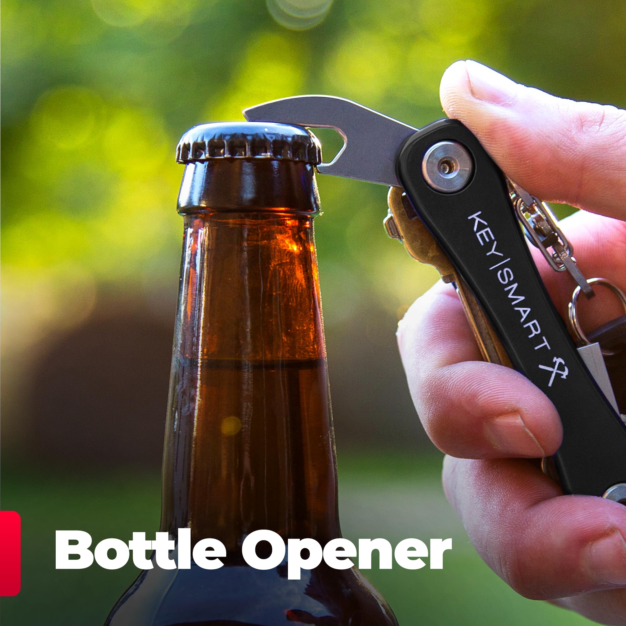KeySmart Wytrzymały – wielofunkcyjny uchwyt na klucze z otwieraczem do butelek i klipsem kieszonkowym (do 14 kluczy, czarny)