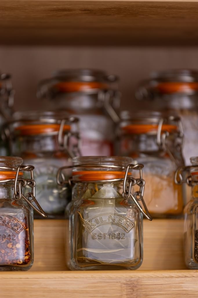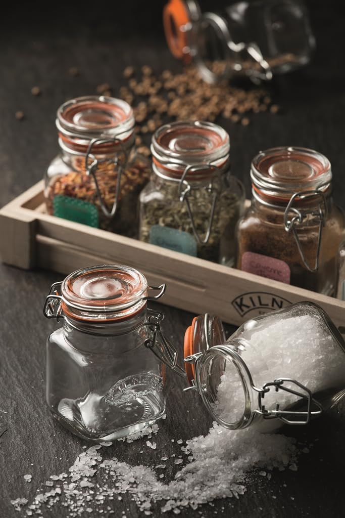 ✅ Zestaw słoików na: Zestaw słoików na przyprawy z klipsem Kilner Clip Top jest idealny do organizowania ziół i przypraw w szafkach i spiżarniach, drewniana skrzynia tworzy inteligentny wystrój domu i utrzymuje słoiki w porządku, dołączone etykiety mogą być używane do oznaczania każdego słoika jego zawartością, każdy sł